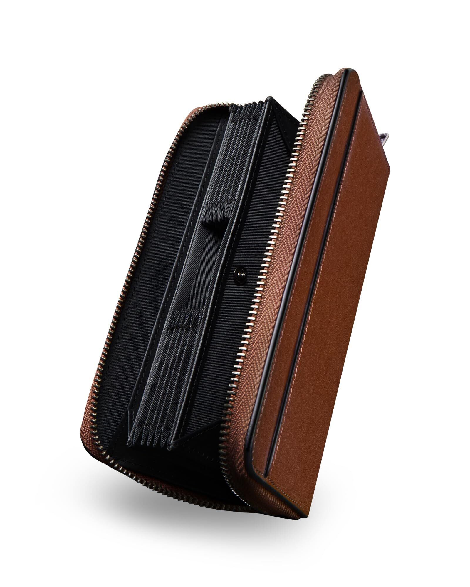 【2022最新】財布 メンズ 長財布 栃木レザー 本革 ボックス型の小銭入れ 大容量 カード縦入れ カード16枚 YKKファスナー 通帳ポケット 一流の革職人が作る 紳士 ビジネス 金運 (コーヒー) | 無意味ステッカー
