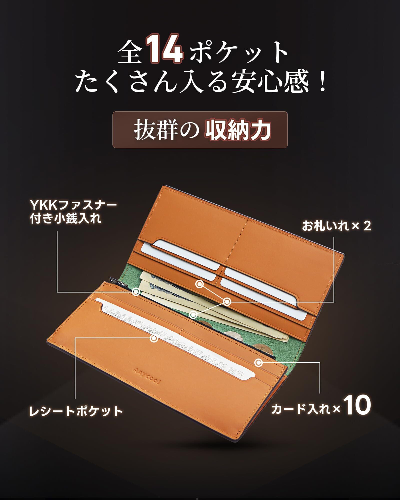 財布 メンズ 栃木レザー 長財布 一流の革職人が作る 本革 ウォレット 薄い 大容量 ながざいふ 紳士用 (ブラック)