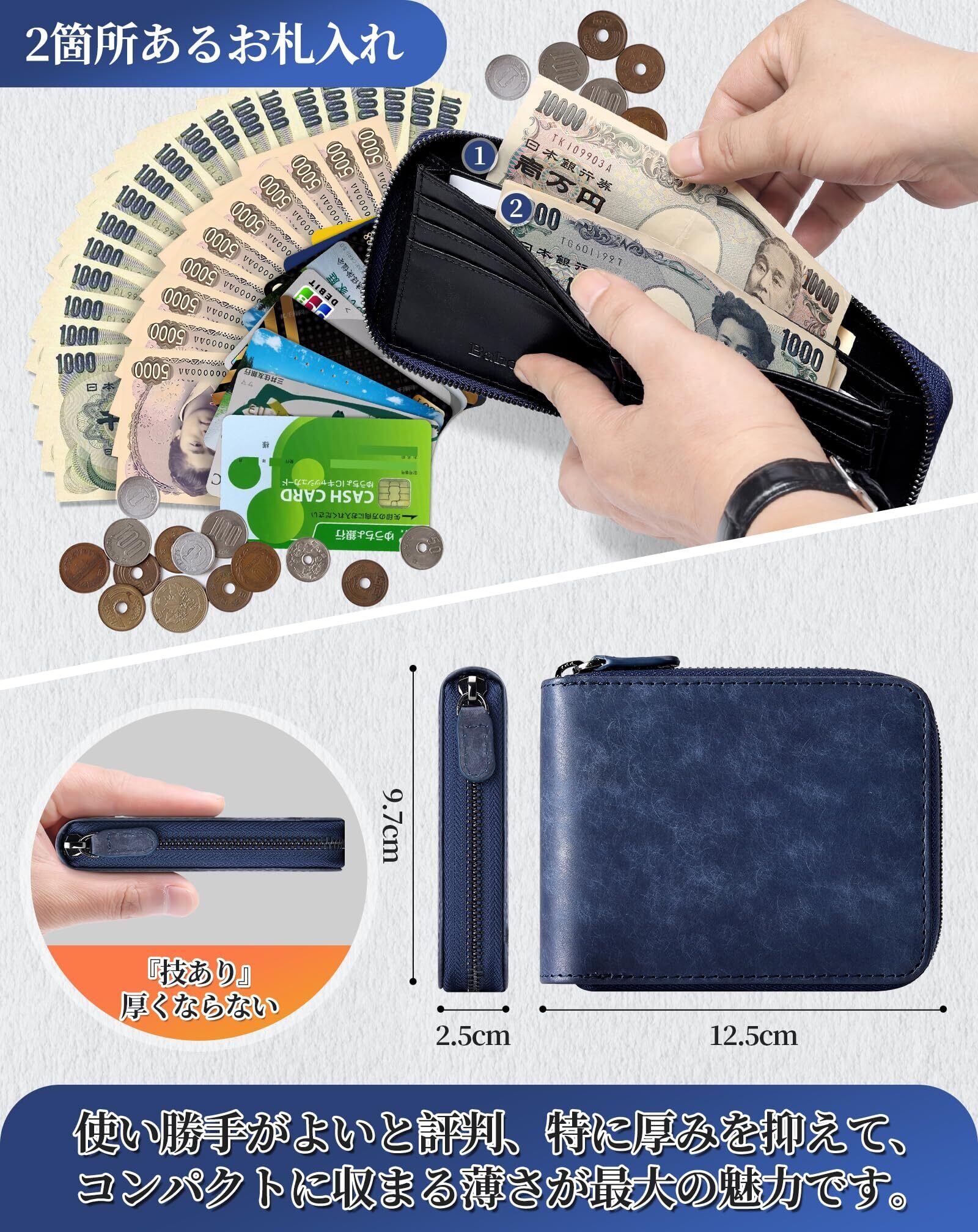 【常に美しい&実用を追求し】効率的な収納空間とコンパクトなサイズを徹底するとともに、どうすれば見やすく使いやすいかを考え抜いた新しい二つ折り財布。現金と、レシートやクーポンなど、クレジットカードや、ポイントカードなどをスムーズに仕分けて整頓し、「常に美しい中身」を目指すために作られた財布、入学・卒業、就職祝い、父の日、お誕生日などに最適です。