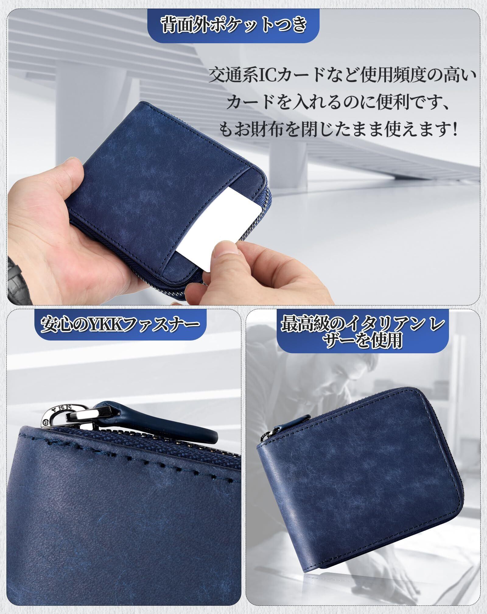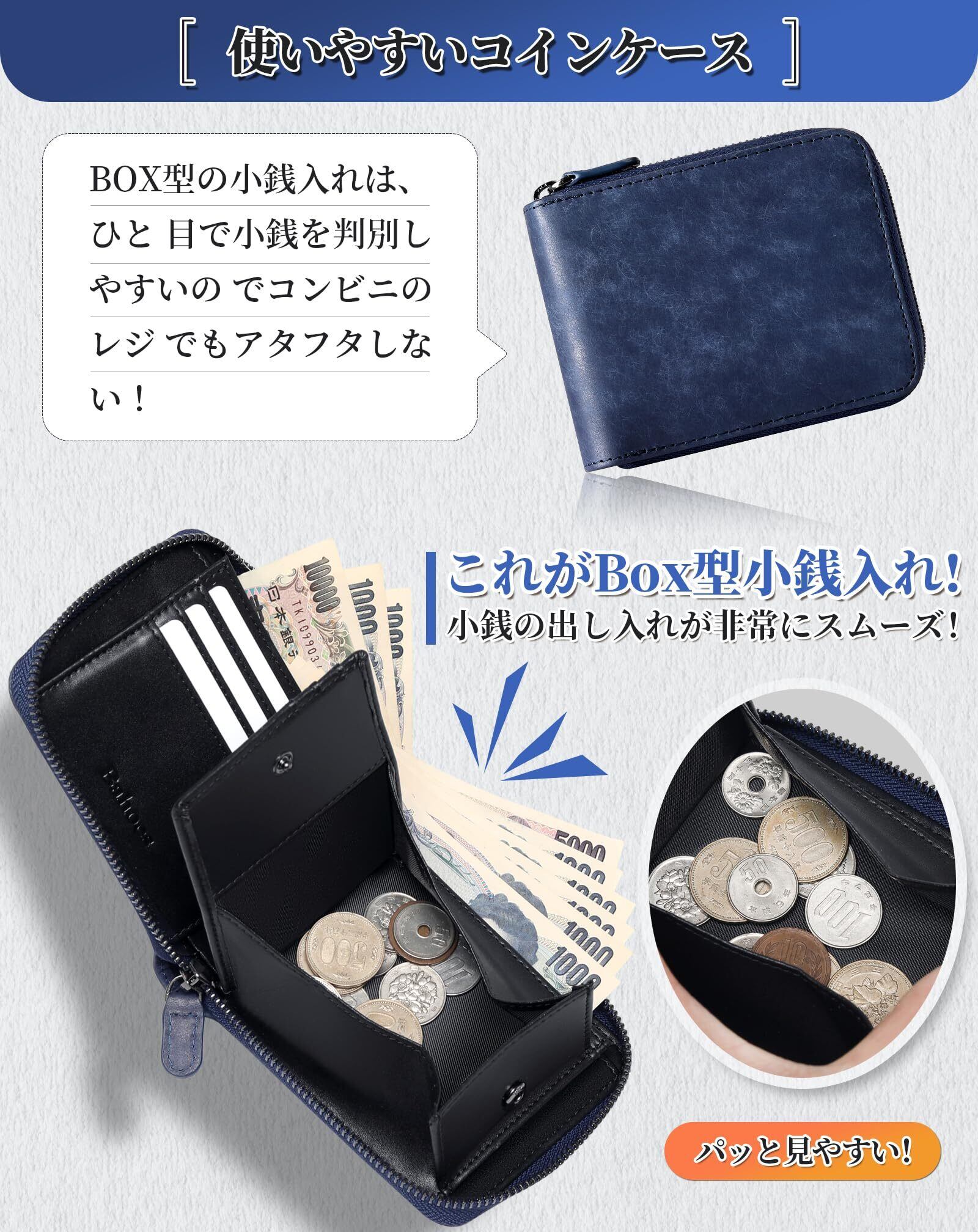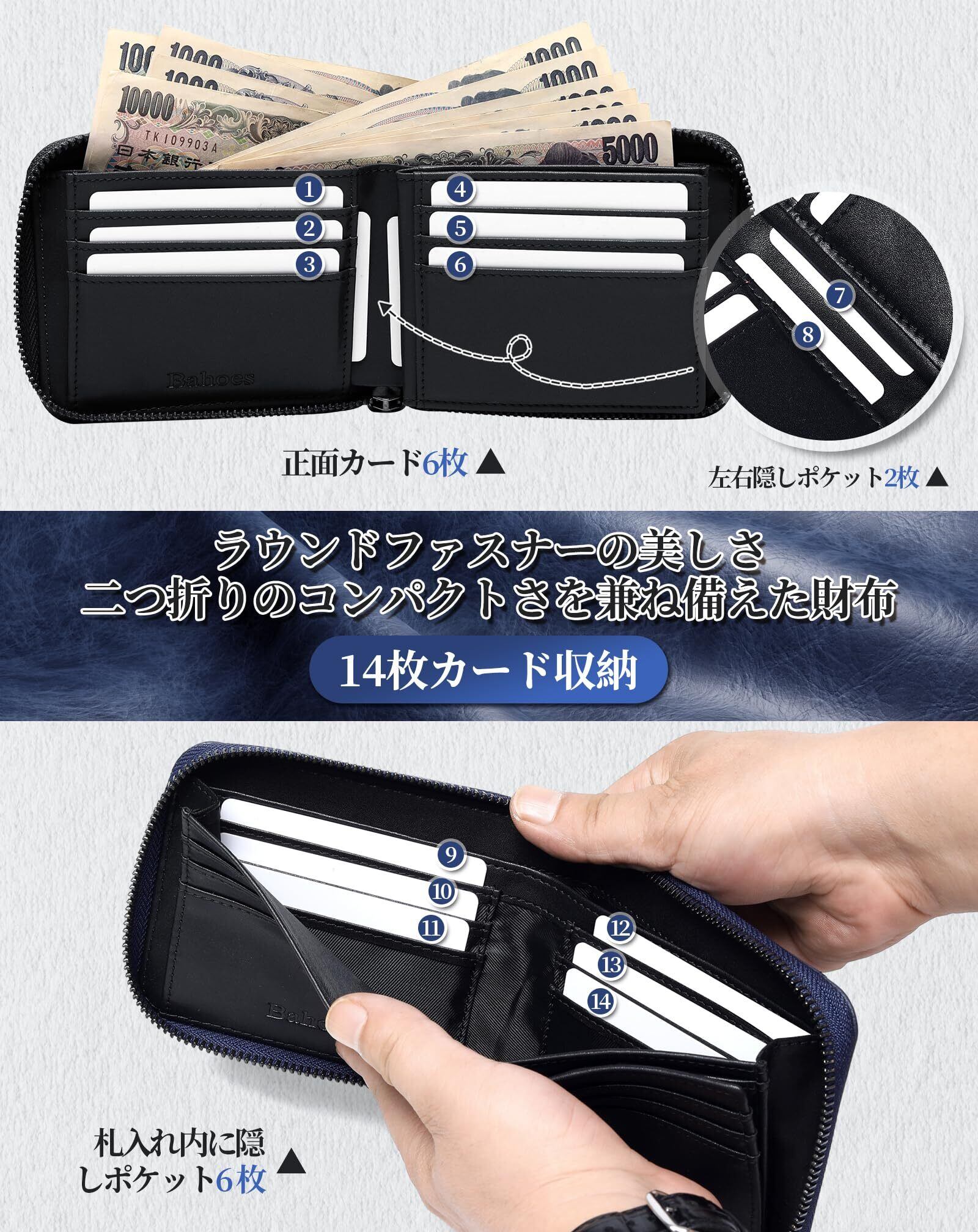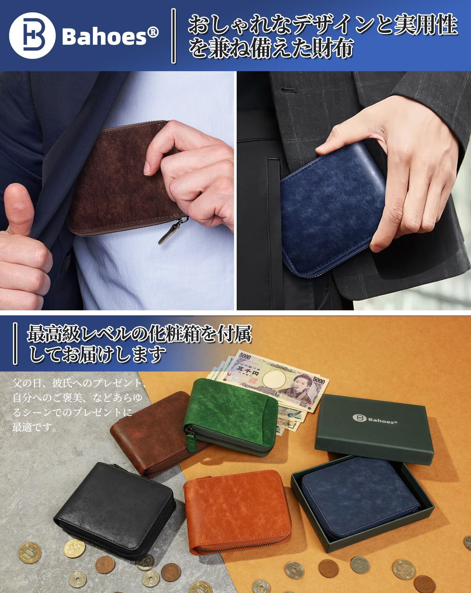 [Bahoes] 二つ折り財布 メンズ 2つ折り イタリアン レザー 本革 ふたつおり 財布 革 人気ブランド box型小銭入れ YKK ファスナー 一流の革職人が作る 折り財布 厚くならない 父の日(新モデル)