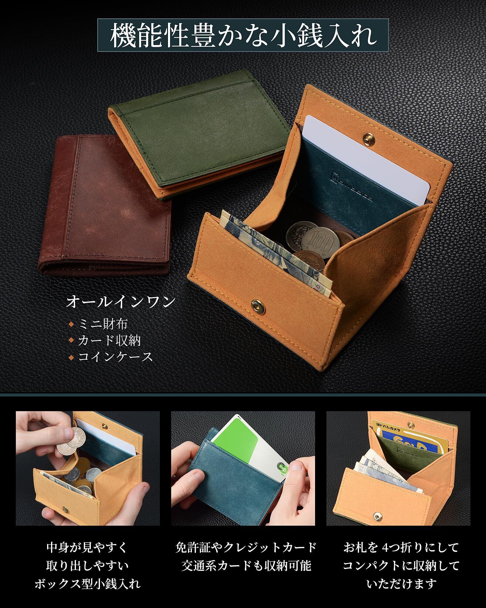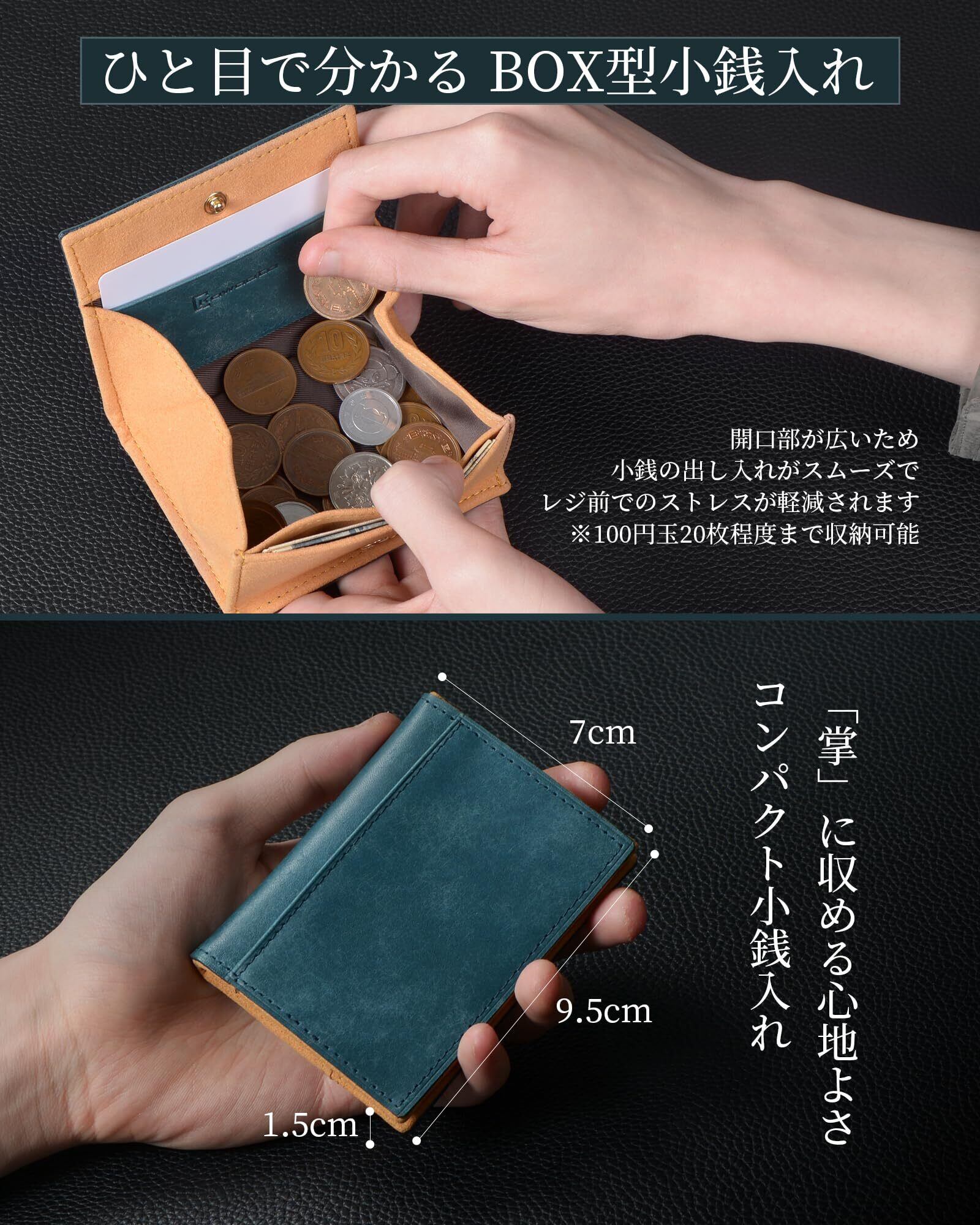 [Kawaoto] 小銭入れ メンズ 日本製 薄いこぜいれ 小さい小銭入れ プエブロレザー 本革 薄型 札もカードも収納可能 コインケース ボックス型 コンパクト 一目瞭然 紳士 (黒色)