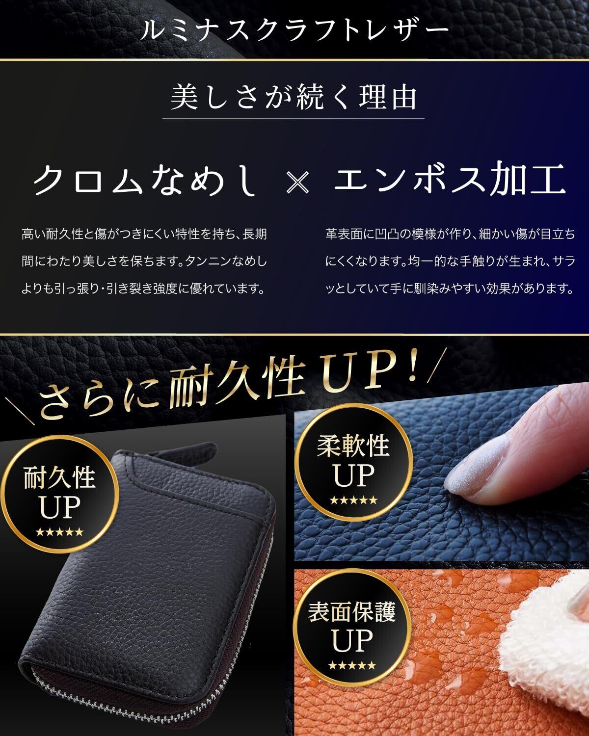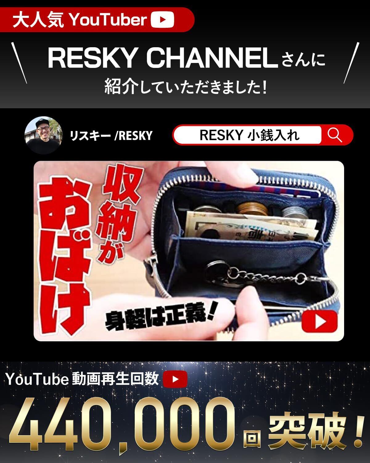 【YKKファスナー】多くの財布が故障する原因の一つであるファスナー。こちらのコインケースでは、滑らかな開閉が可能なYKK社製のファスナーを採用しており、そのため耐久性が向上し、長期間使用できる特長があります。