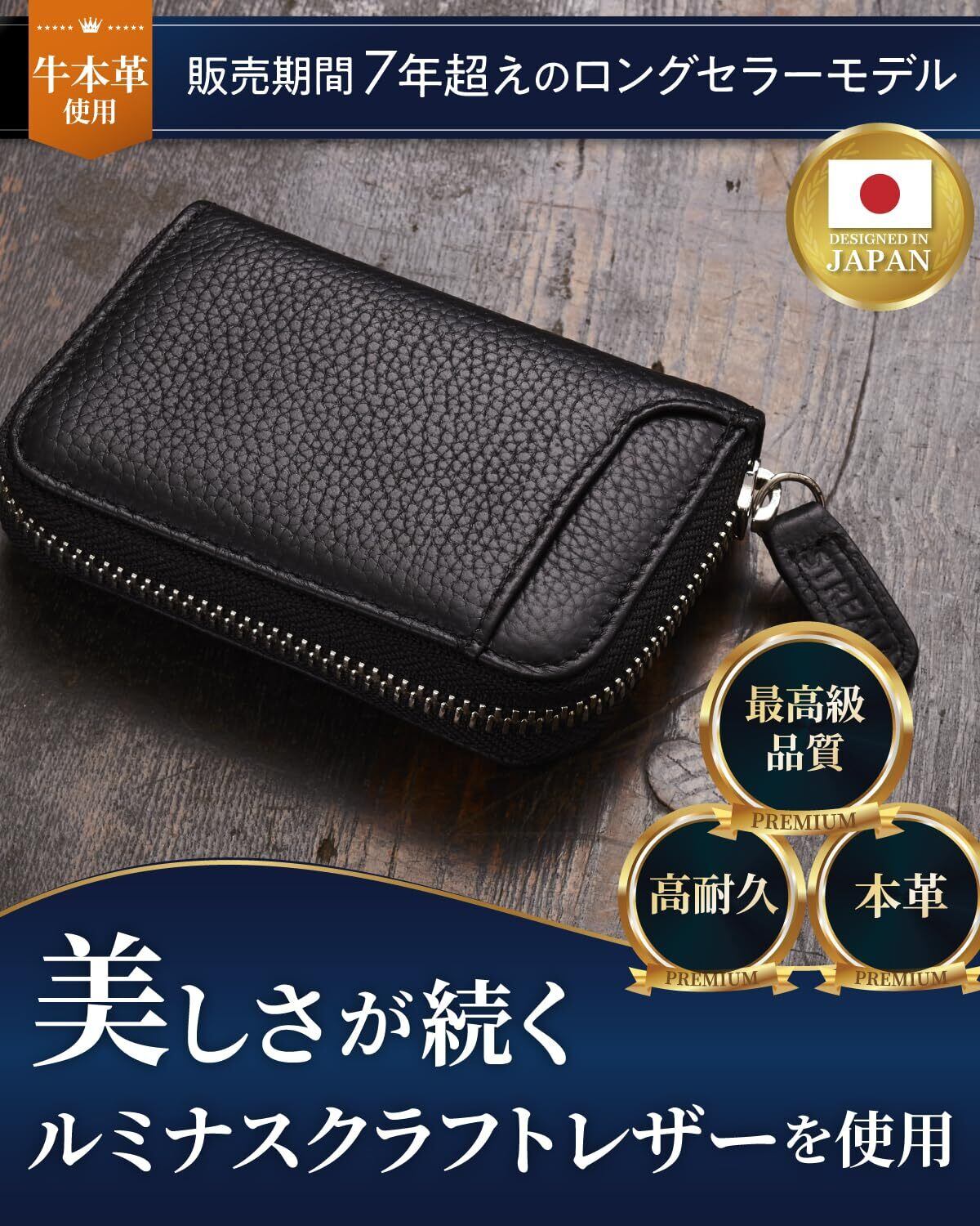 【高見え】小銭入れ コインケース 本革 メンズ レディース 小さい 財布 キーリング付き [STREAM] (ブラック)