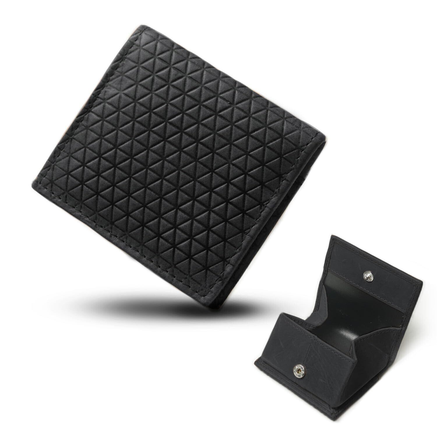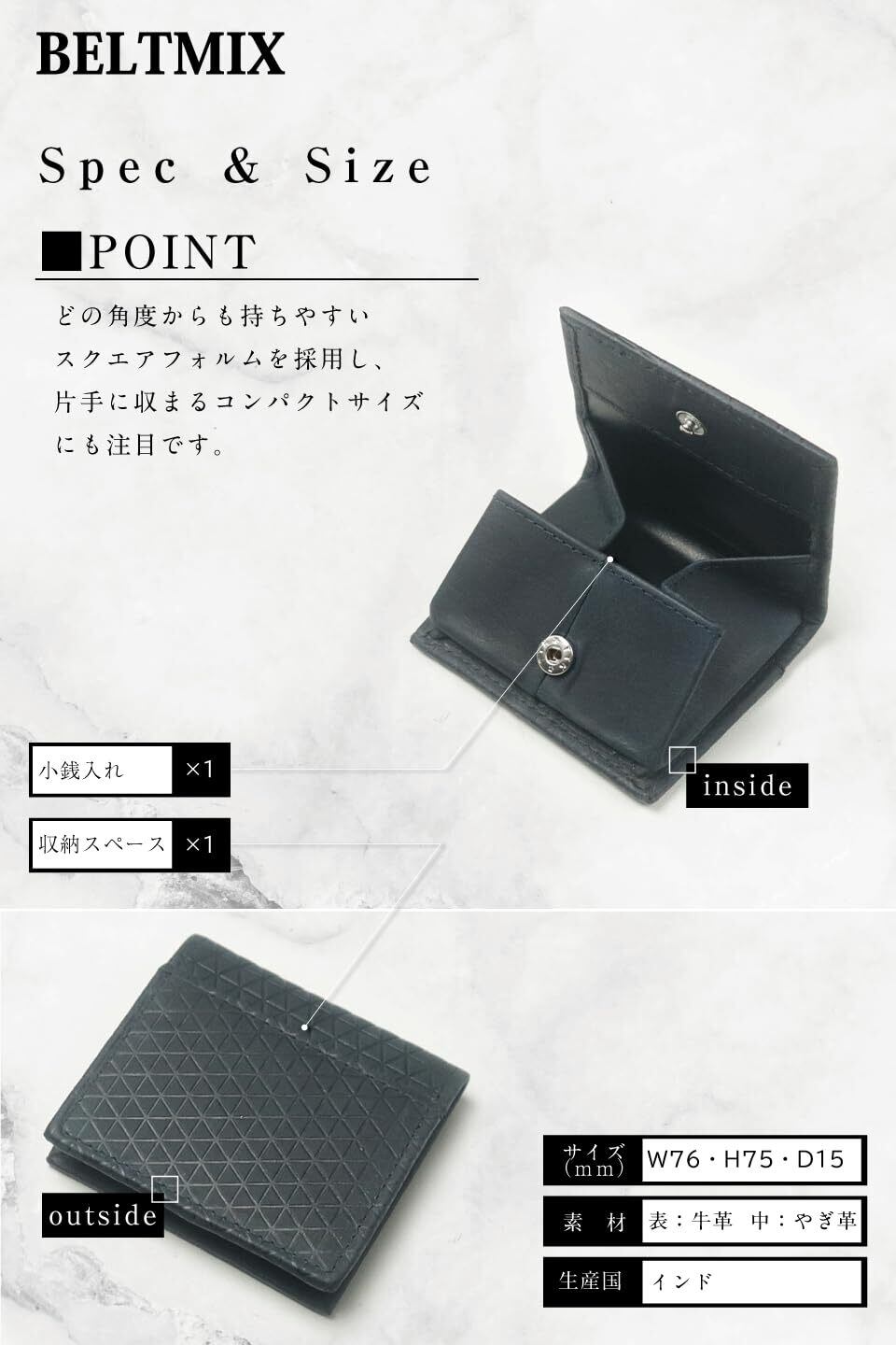 [BELTMIX]小銭入れ メンズ 本革 エスニック レザー ボックス型 コインケース 薄型 コンパクトサイズ 紳士 ビジネス レディース ユニセックス S-60 (Black)