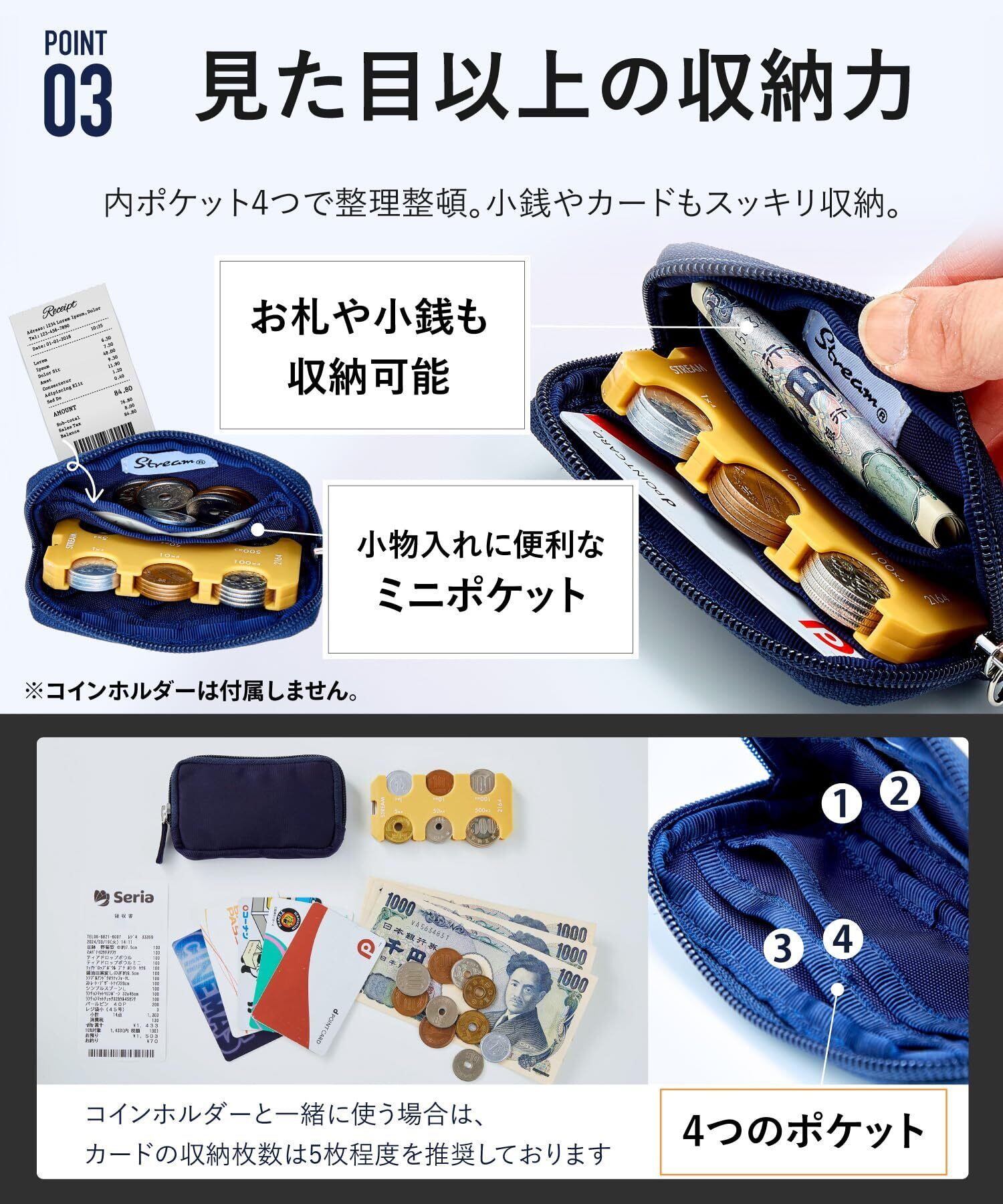 【コインホルダーに最適】コインホルダーがすっぽりと入り、クレジットカードや追加の硬貨も収納できます。 STREAMコインホルダーを始め、他社製品もしっかりと収納可能!コンパクトなお財布としても活躍します。
