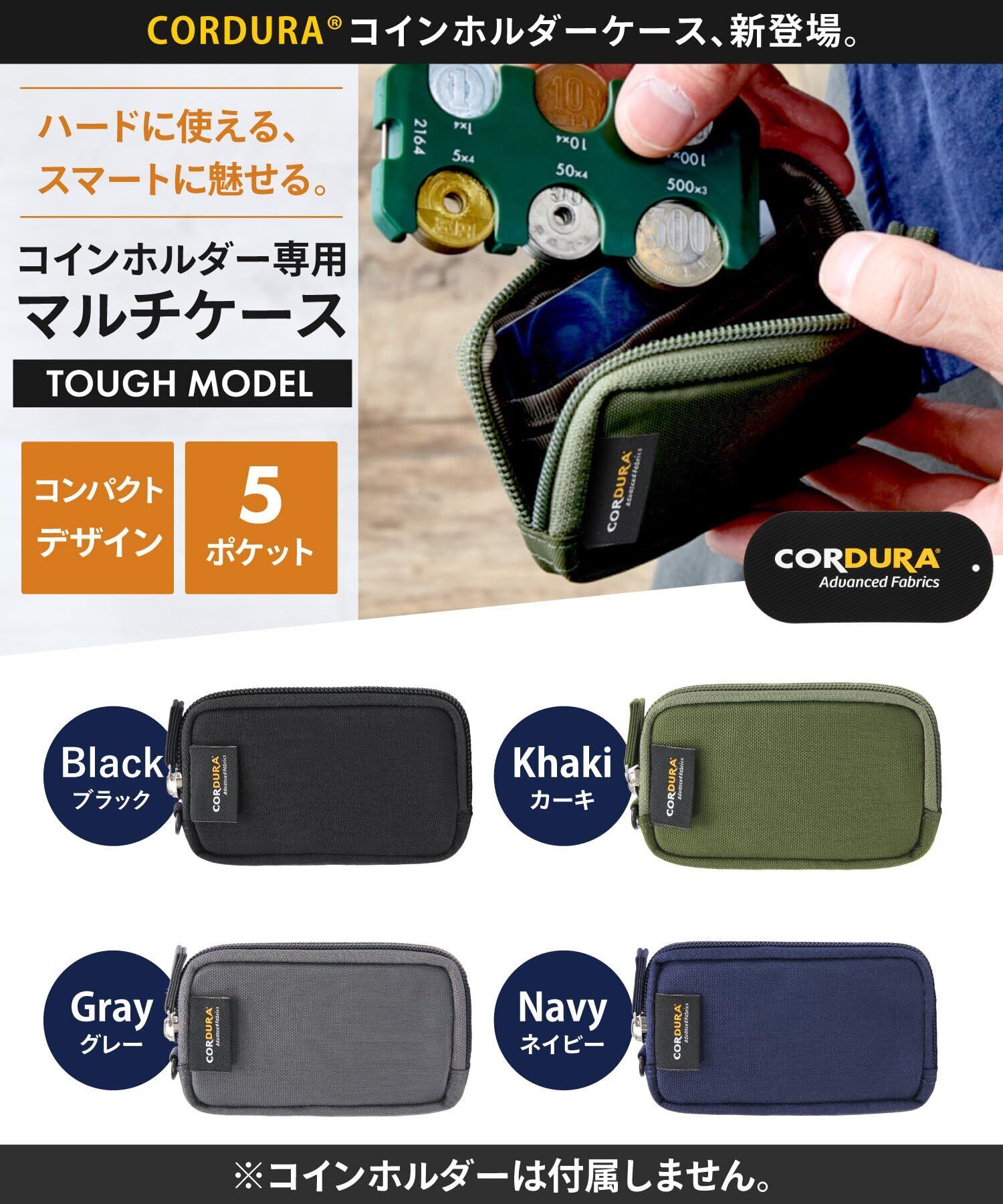 【富士登山で活躍】コインホルダー ケース 小銭入れ 財布 コイン収納 カード入れ 携帯用 [STREAM] (タフモデル(CORDURA仕様), カーキ)