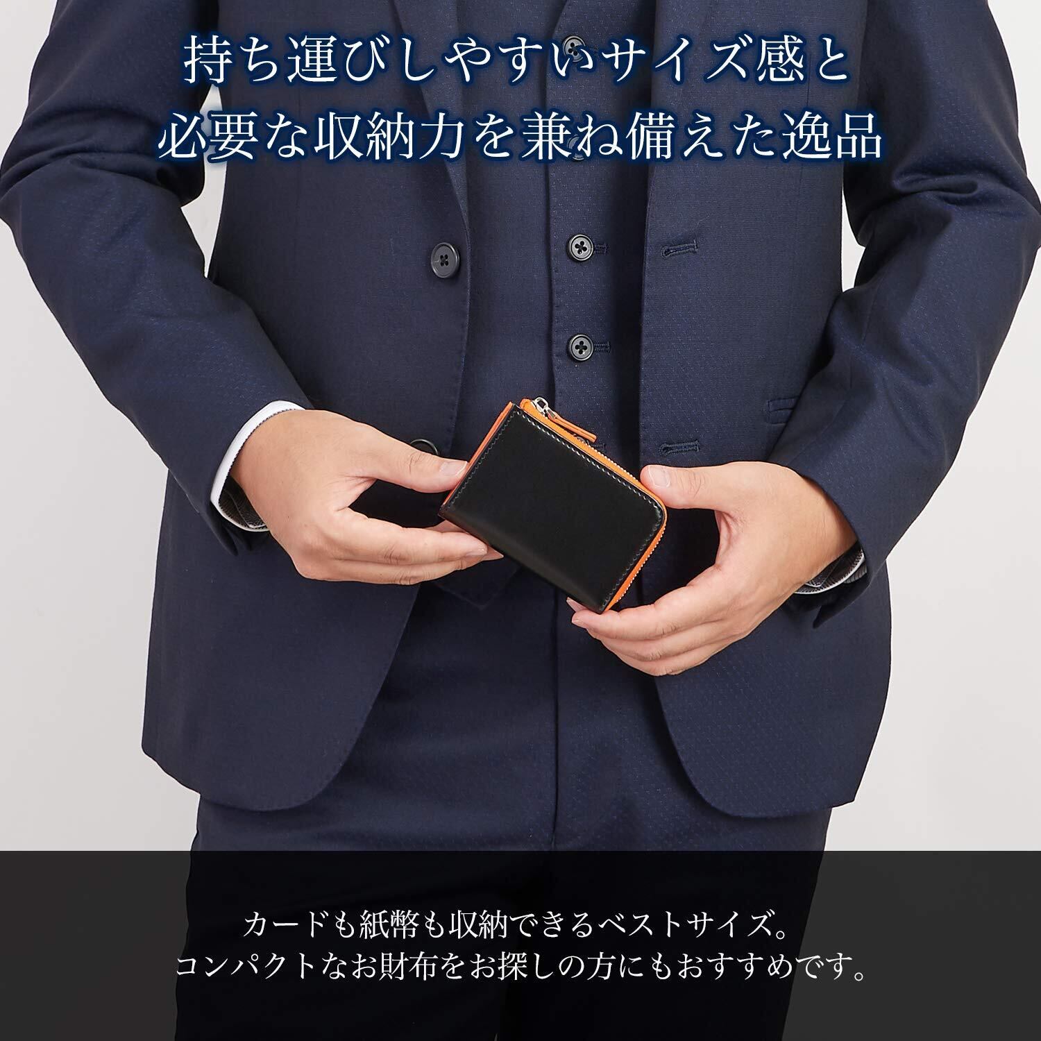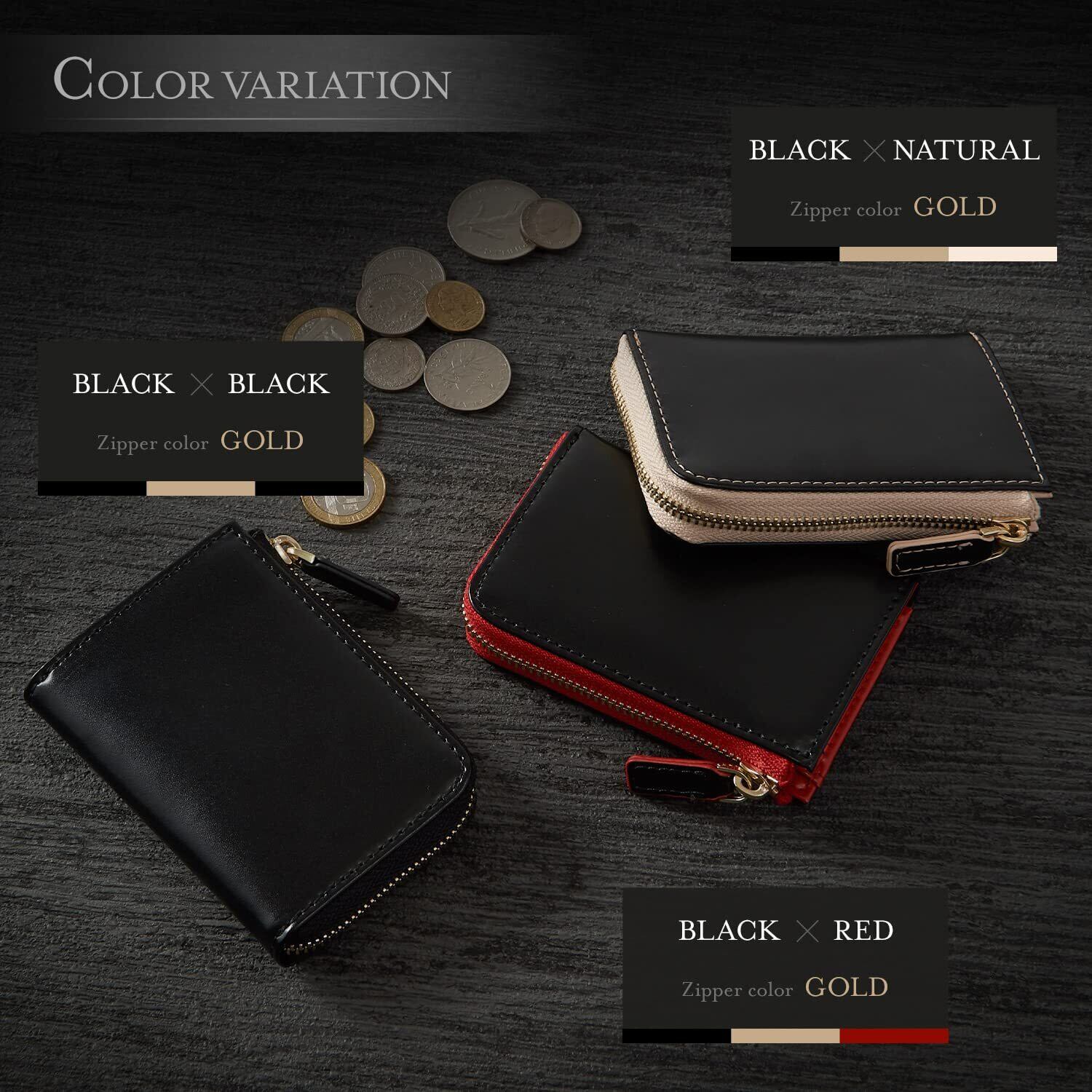 【 サイズ×素材 】サイズ:縦66mm、横98mm、厚さ18mm (お札の収納は三つ折りでの収納となります) 素材:牛床革(本革)本商品は一般財団法人日本皮革研究所より品質証明をいただいております。 仕様:内側 コインスペース×1、フリースペース×1背面カードポケット×1、カードポケット×2、ゴールドファスナー : ブラック/ブラック、ブラック/レッド、ブラック/ナチュラル、に新色のブラック/ネイビー、ブラック/オレンジ、ネイビー/ネイビー、グリーン/グリーンが登場! シルバーファスナー :ブラック×ブラック、ブラック×ネイビー、ブラック×グリーン。