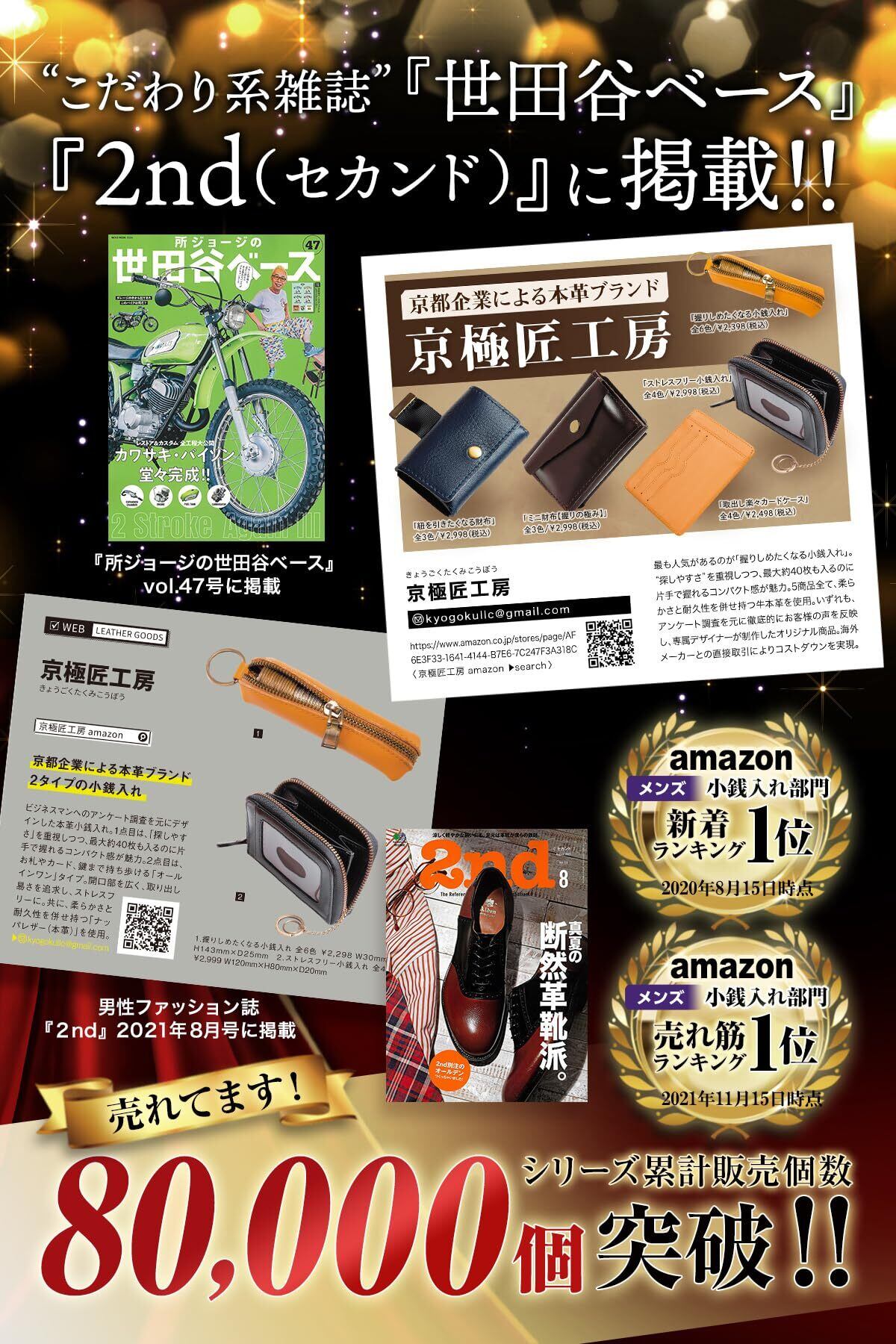 【実績】人気のレザーブランドとして、雑誌(「2nd」(2021.6.16発売)と雑誌「所ジョージの世田谷ベース」(2021.8.31発売)に掲載されました。(京極匠工房と革師京極は系列店です)
