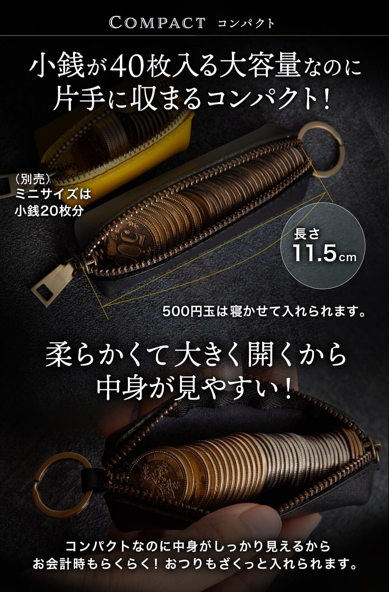 【特徴】 片手で握りしめられるコンパクトでミニサイズなコインケース(レディース用としても最適)、同シリーズの「取出し楽々カードケース」とお揃いで統一感を持たせるとおしゃれです。