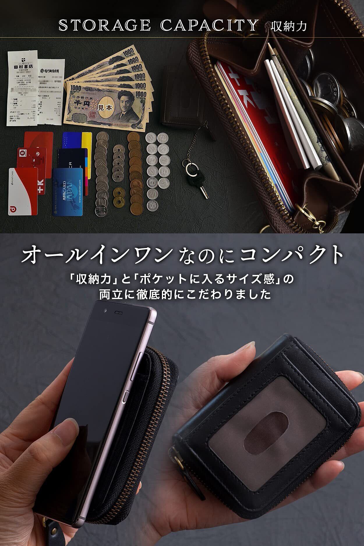 【コンパクトなのに驚きの収納力】男性が握れるサイズ感(幅12cm×高さ8cm×厚さ2cm)のコインケース。小銭[40枚程度]、カード[6枚程度]、お札[10枚程度]、鍵(かぎ)用チェーン付。
