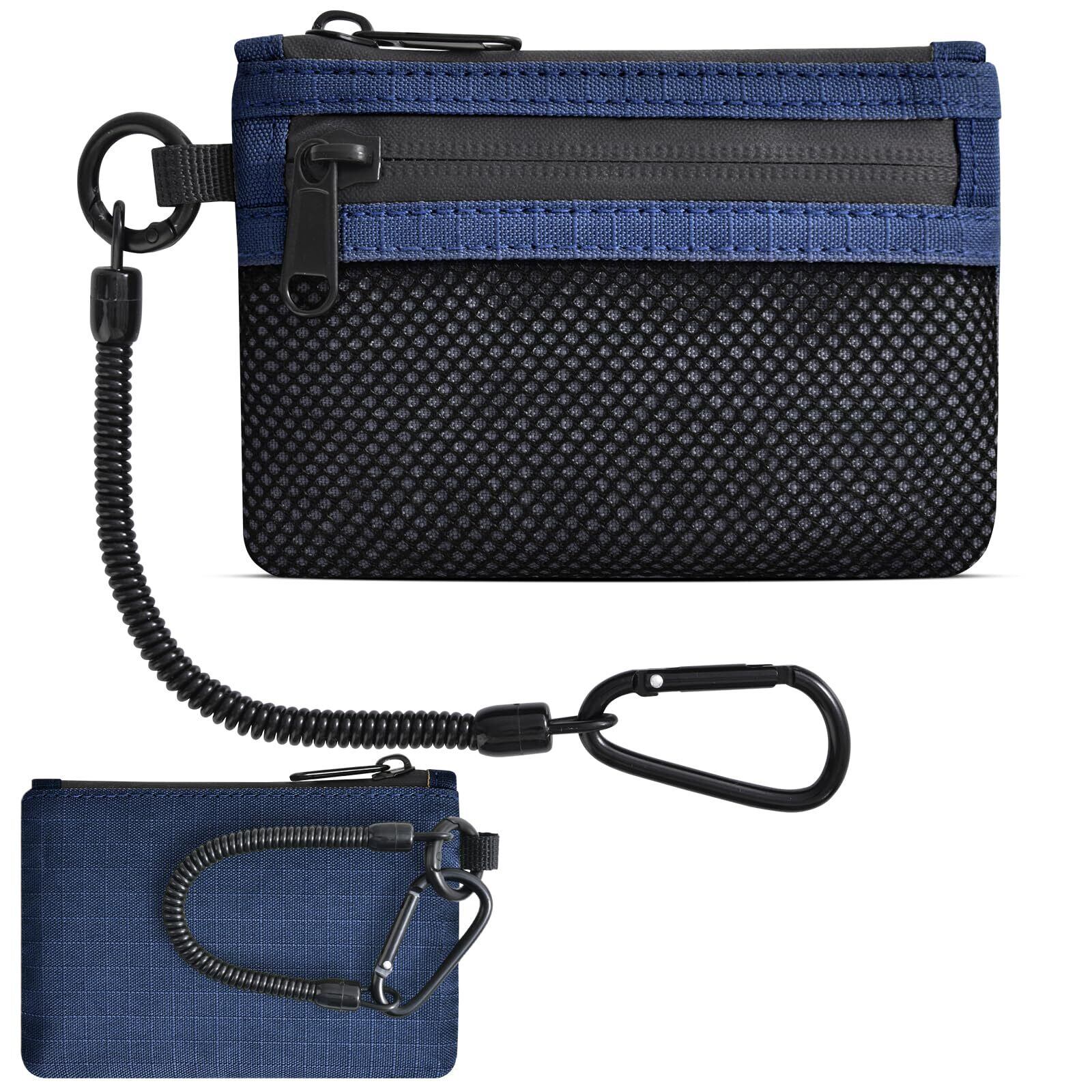 [UriCase] メンズ・レディース男女兼用 薄型防犯パスケース コイン・カード入れ付き ミニ 財布 スキミング防止 トラベルウォレット キーチェーン付き 海外旅行・アウトドア用 定期入れ 伸びる 落下防止(ネイビーブルー)