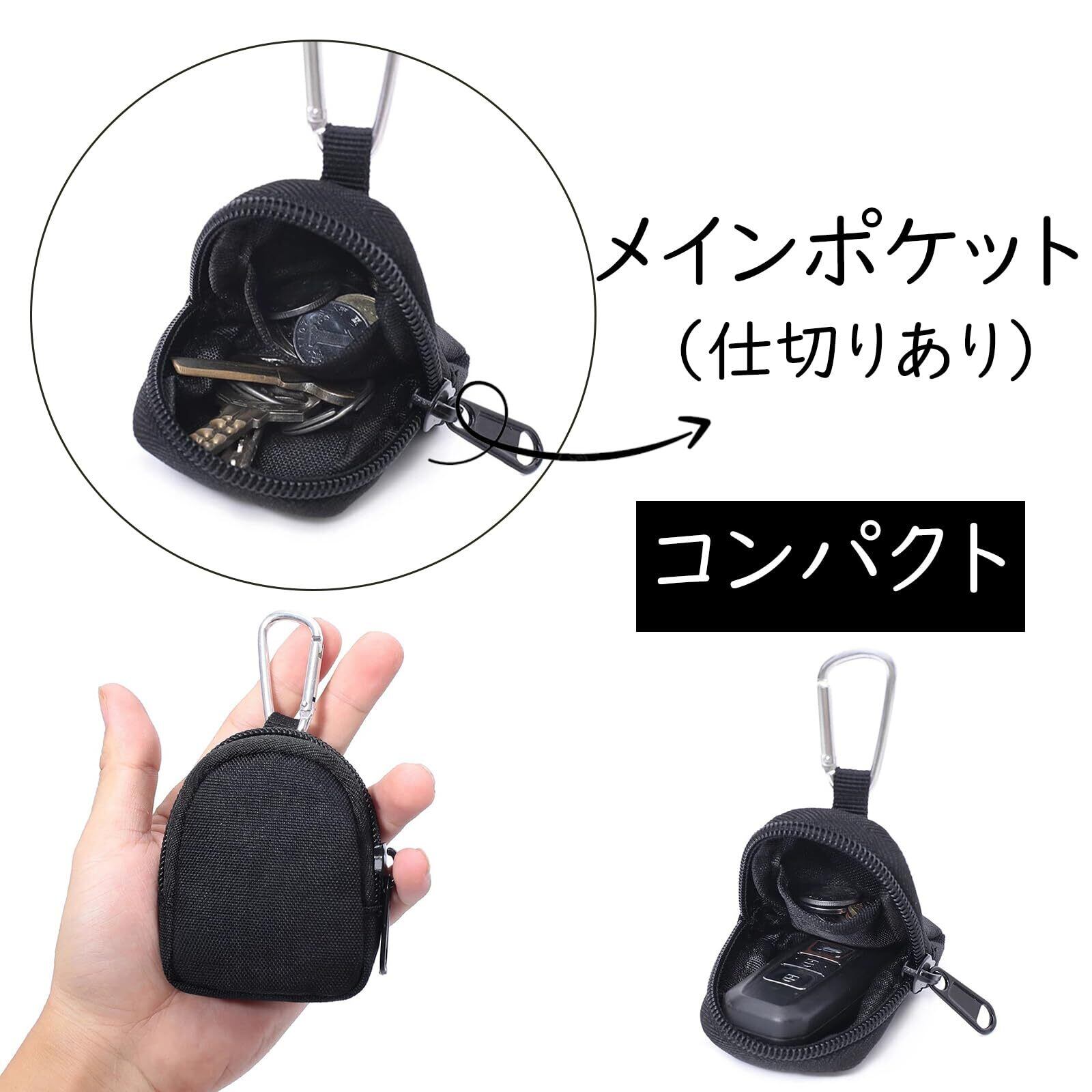 【TOEDNNQI】小銭入れ コインケース メンズ コンパクト財布 キーケース カラビナ付き 小物入れ 小物収納 ハイキング ナイロン キーリング ファスナー レディース サバイバルゲーム サバゲー ミリタリー タクティカル ジッパー 男女兼用 ユニセックス (ブラック)