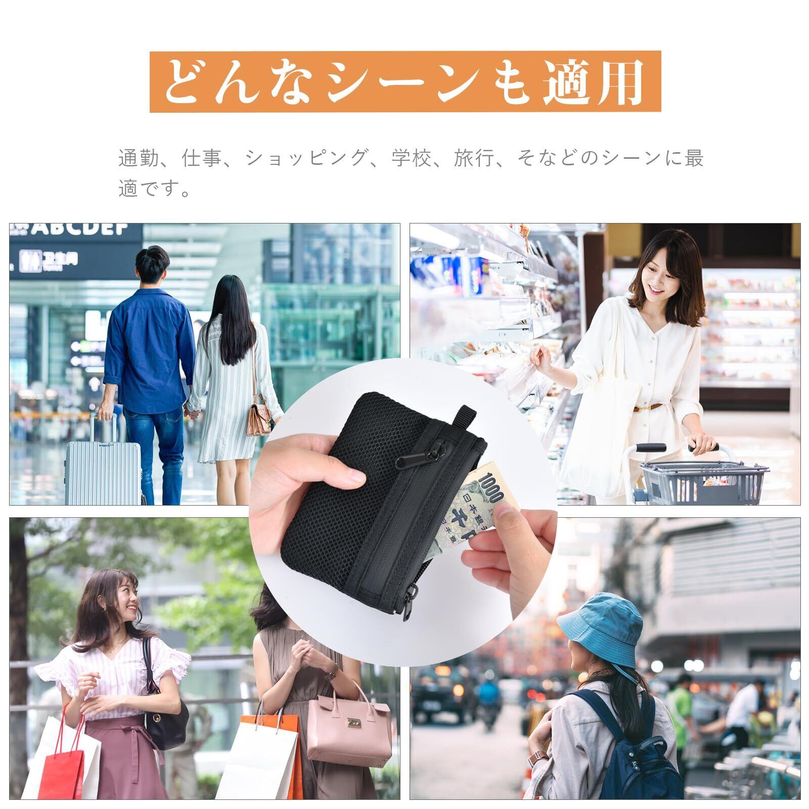 【持ち運びに便利】財布の前面がメッシュ仕様になっており、一目で表裏の区別がつくので、うっかり開けても小銭がこぼれる心配がありません。また、自由に伸縮できるバネロープが付いているので、ハンドバッグに取り付けることができます!ビジネス、旅行、アウトドア、普段使いに最適です!シンプルで洗練されたデザイン。プレゼントにも最適です!