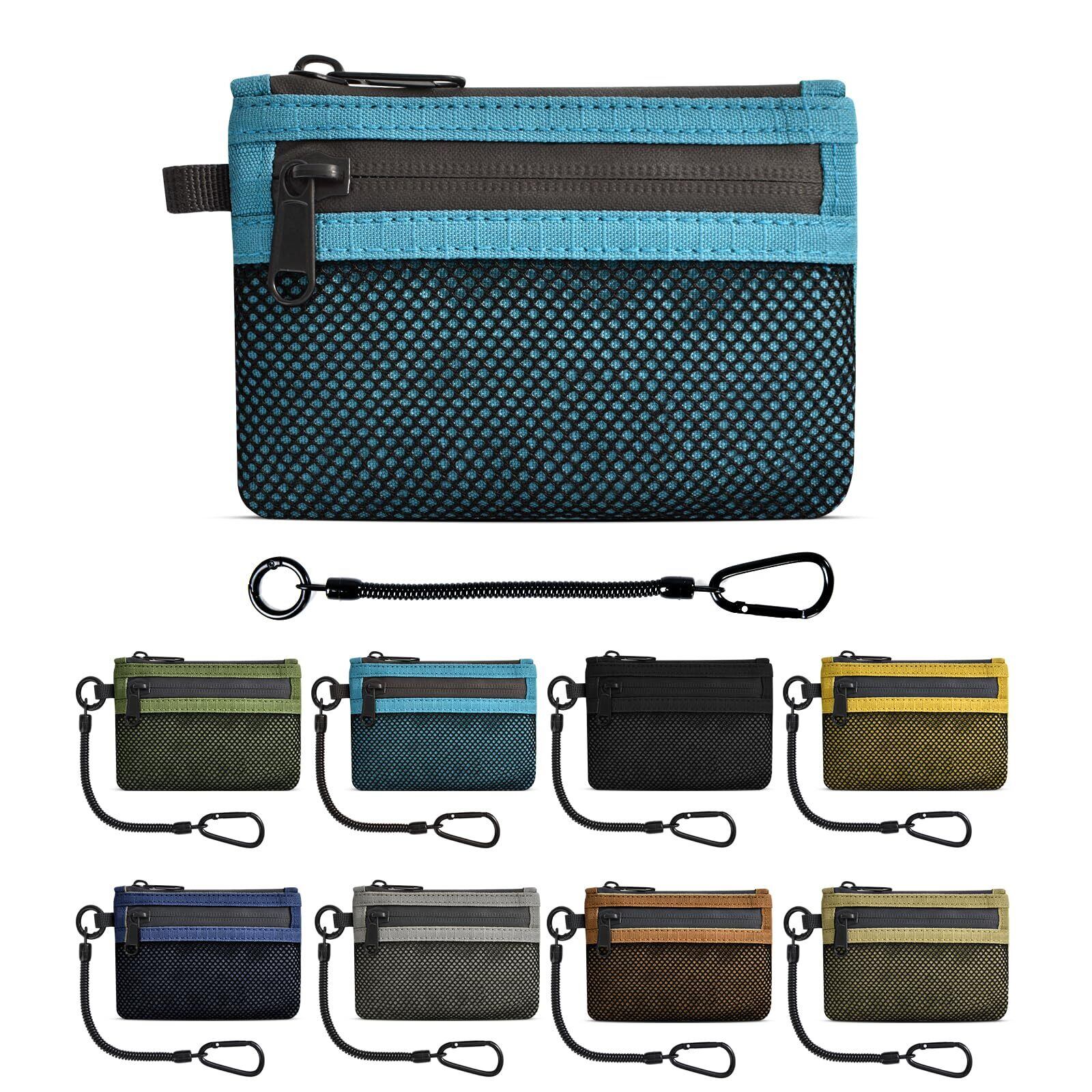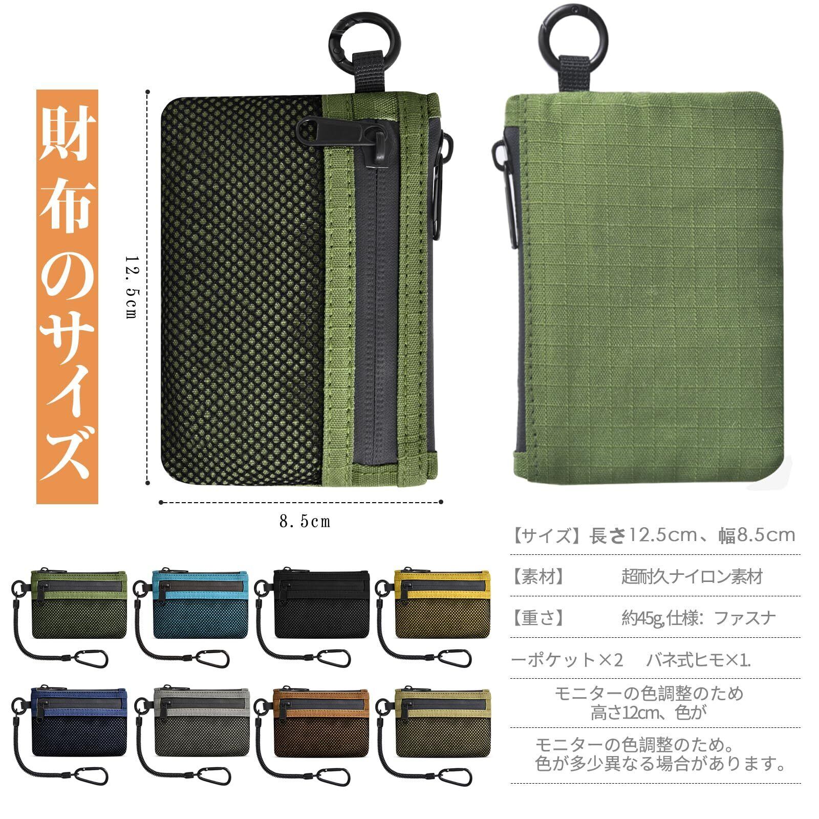 【財布仕様】 サイズ:縦12.5cm×横8.5cm×厚さ2cm 重さ:約45g 仕様:ファスナーポケット×2、バネ紐×1(最大30cm収納可能) 取り外し可能なハイキングバックルのバネ紐が付属しています。素材:ナイロン生地、コンパクト、軽量、薄型、大容量なのでバッグの中で場所を取りません。小銭やカードも取り出しやすい。