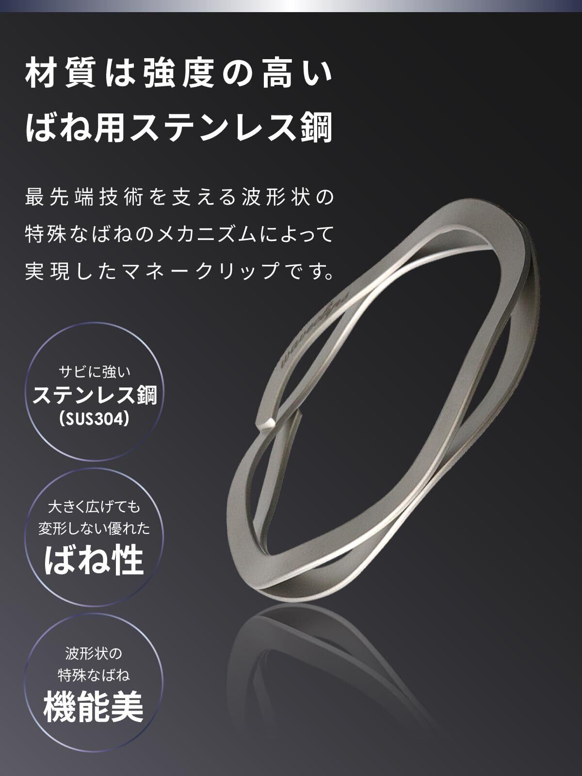 [Waveclips] マネークリップ 日本製 【最先端技術を支える工業用ばね】 はさみやすい 高強度 軽量 取付け簡単 ステンレス メンズ プレゼント 国内製造 (ラージ)
