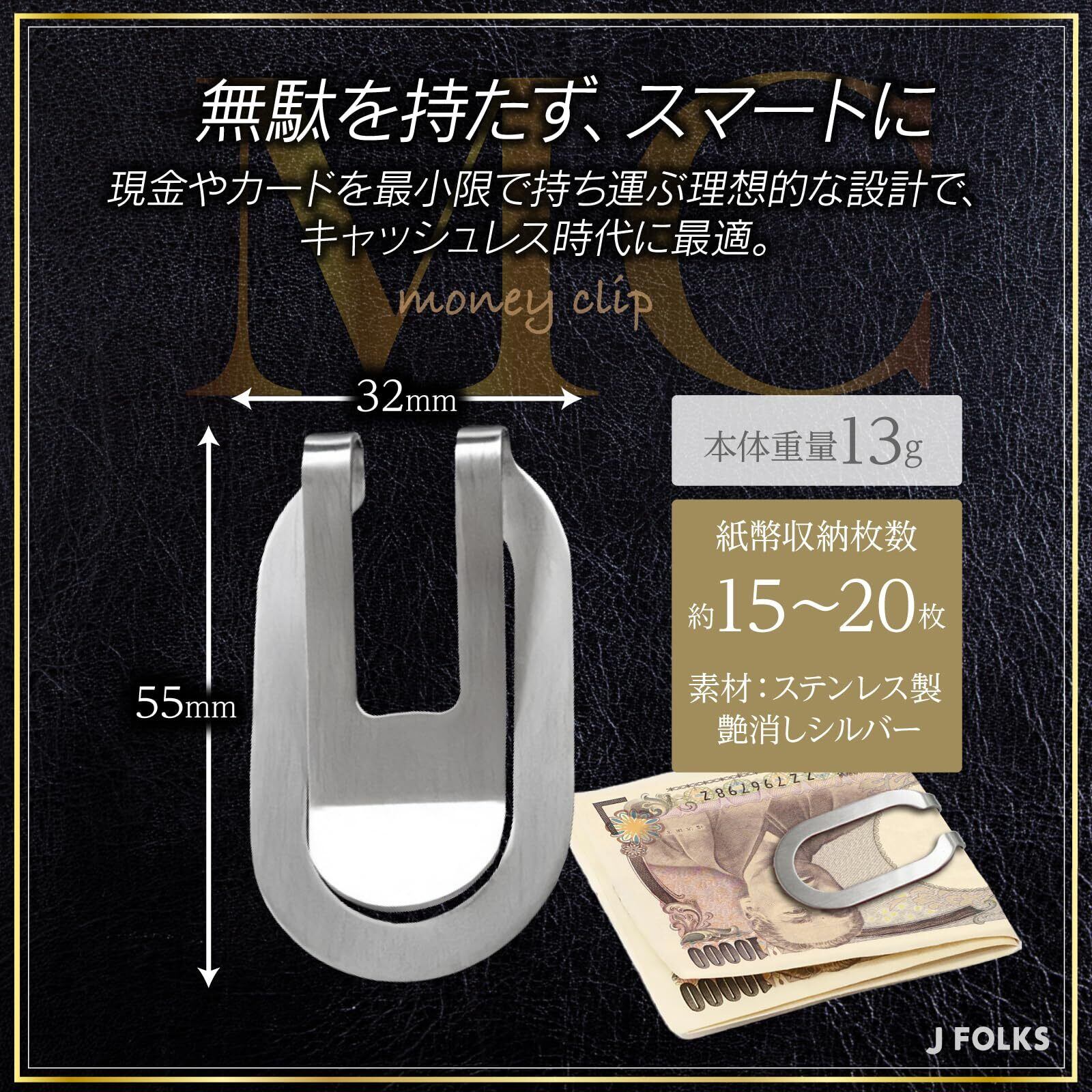 [JFOLKS] 持ち物はスマートに、必要な分だけ マネークリップ 挟む力が戻る構造 メンズ レディース ステンレス製 軽量 ・ 薄型 ブラックカラー スーツポケット に最適 ミニマリスト 向け お札クリップ おしゃれな財布 現金 & クレジットカード 収納 シンプル で かっこいい 2カラー ブラック