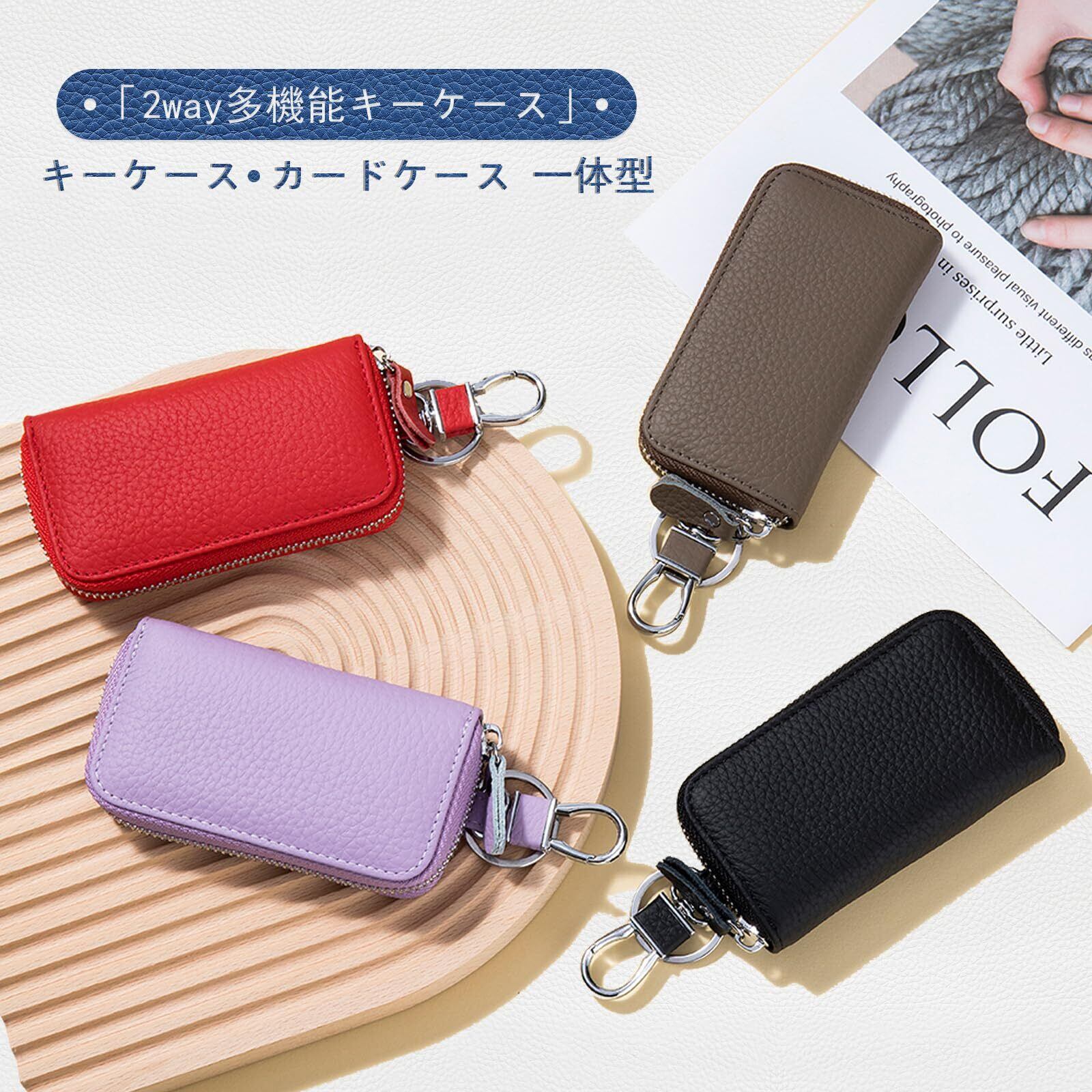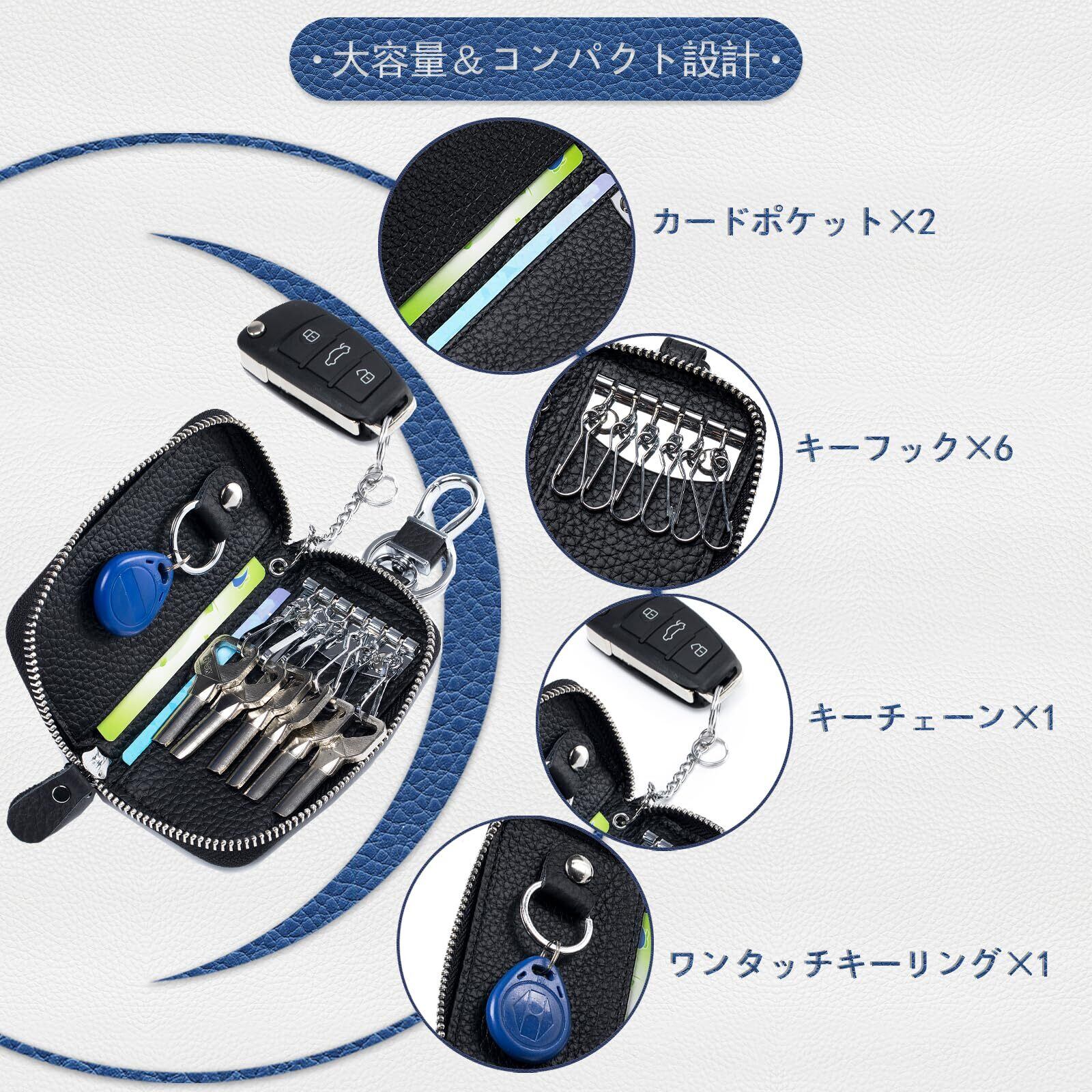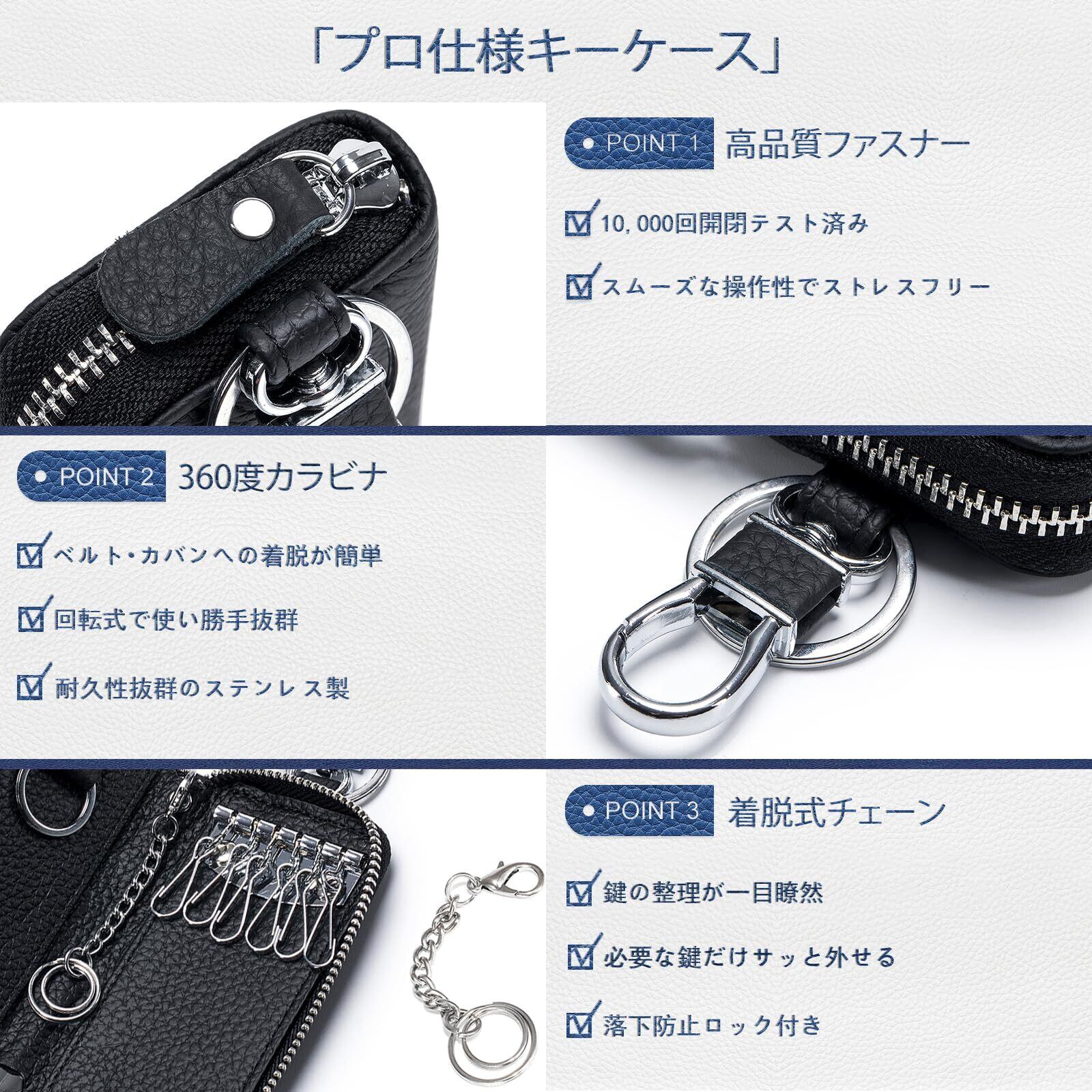 [Amzbag] キーケース メンズ レディース 本革 カードケース キーケース 6連フック スマートキーケース 車 小銭入れ 360°回転カラビナ ワンタッチキーリング キーホルダー付き パスポートケース 多機能 大容量 防水 おしゃれ ギフト