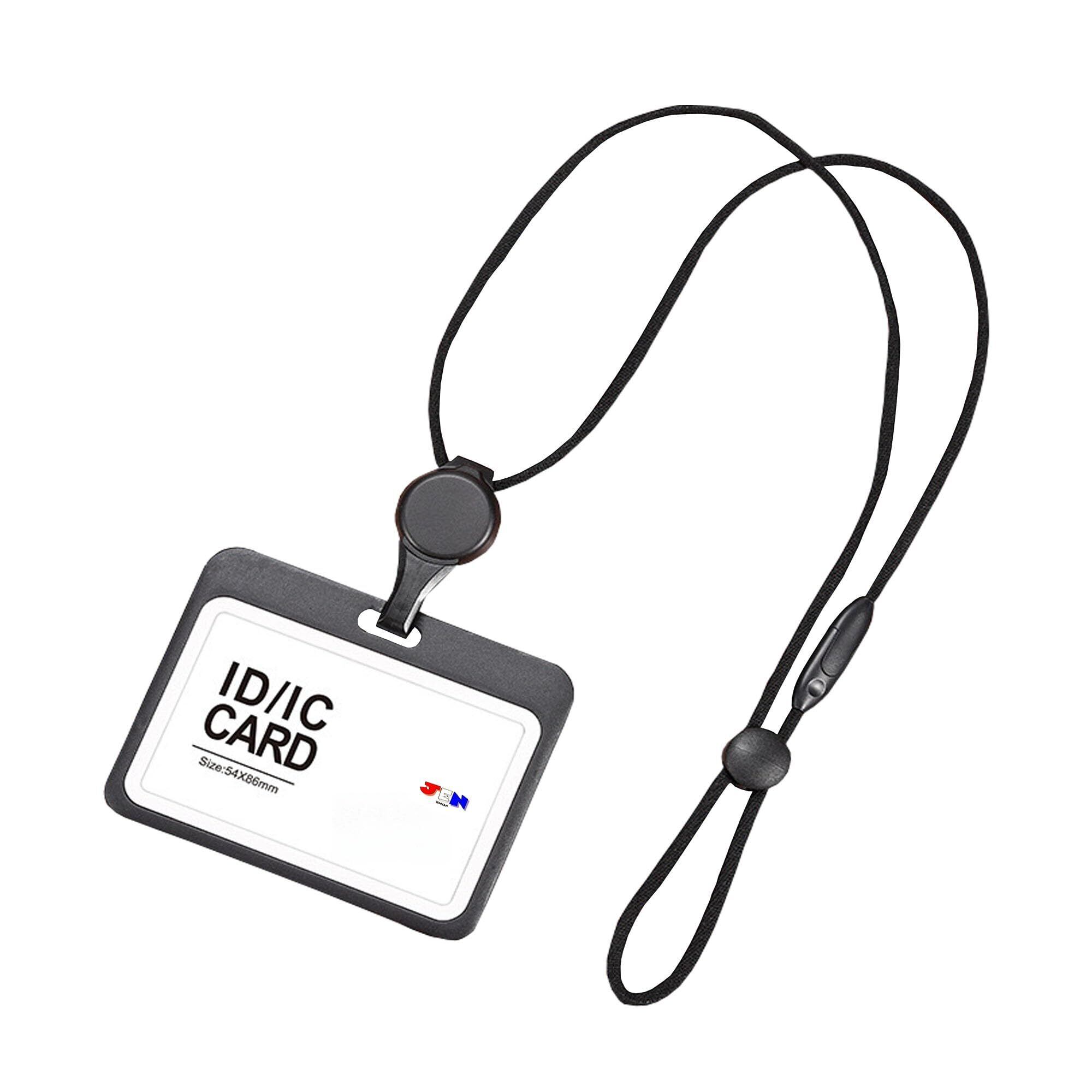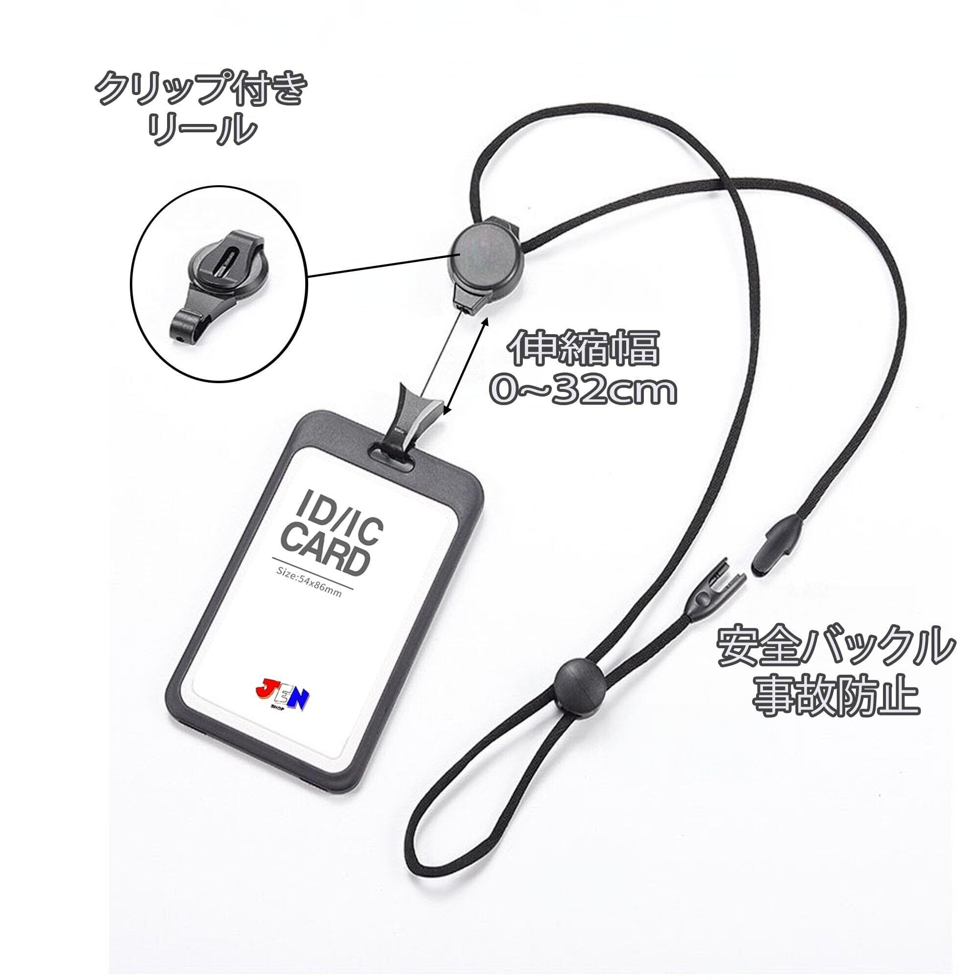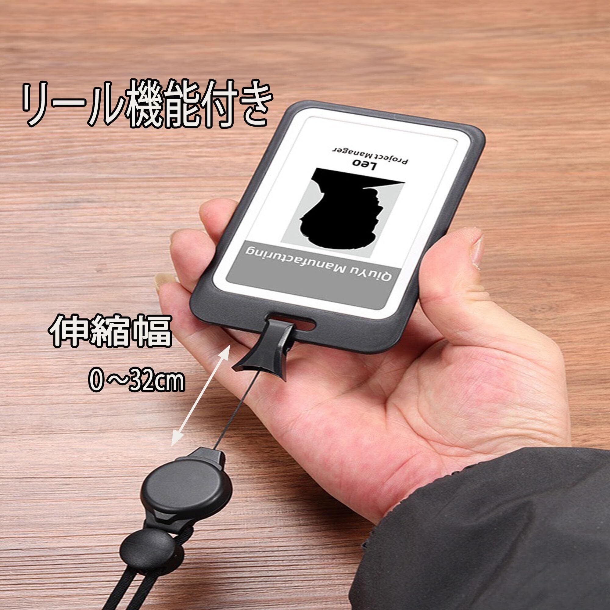 【JEN SHOP】IDカードホルダー リール付き 長さ調整可 社員証ケース リール付き 縦型 カードホルダー 縦 両面2枚収納 IDカードケース 両面用 メンズ レディース id カードホルダー 縦型 横型が選べる (ブラック, 横)