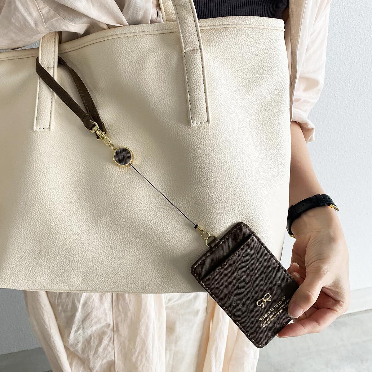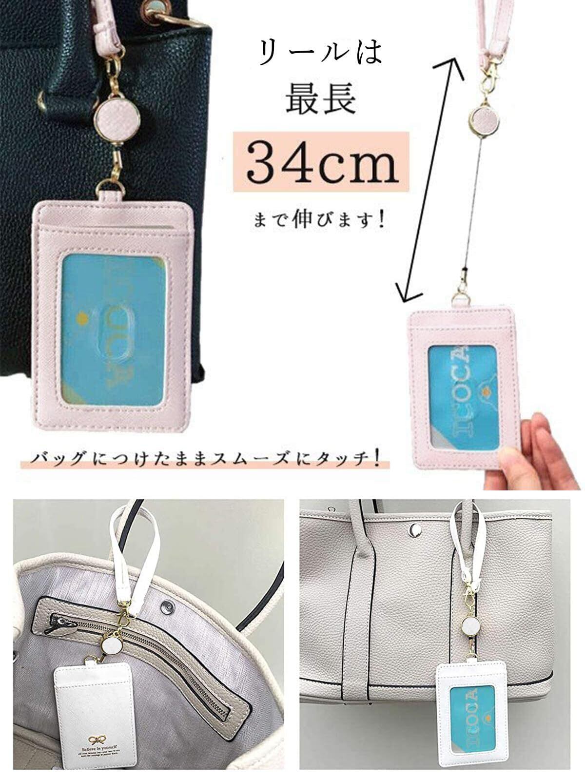 人気のリボンデザイン。 ICOCAやsuicaなどICカード・定期を入れて駅などでも大活躍。 社員証・学生証なども収納出来ちゃいます。 ストラップはフック付きなのでバッグへの取り外しも簡単。 ゴールドリボンがワンポイント。 伸縮リールは選べるイニシャル全10種類。 プレゼントにも喜ばれるオススメ商品です。