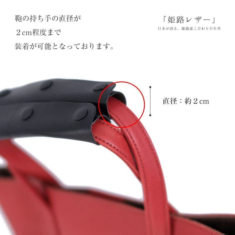 【日本製 「姫路レザー」の取っ手カバー】日本が誇る、姫路産こだわりの牛革を贅沢に使用。本革製品なので耐久性を兼ね揃えております。ビジネスバッグ、レザー製バッグや キャンバス帆布 コットントート、かごバッグなどの持ち手にも合わせやすい。鞄の持ち手の直径が2.0cm程度まで装着可能となっております。