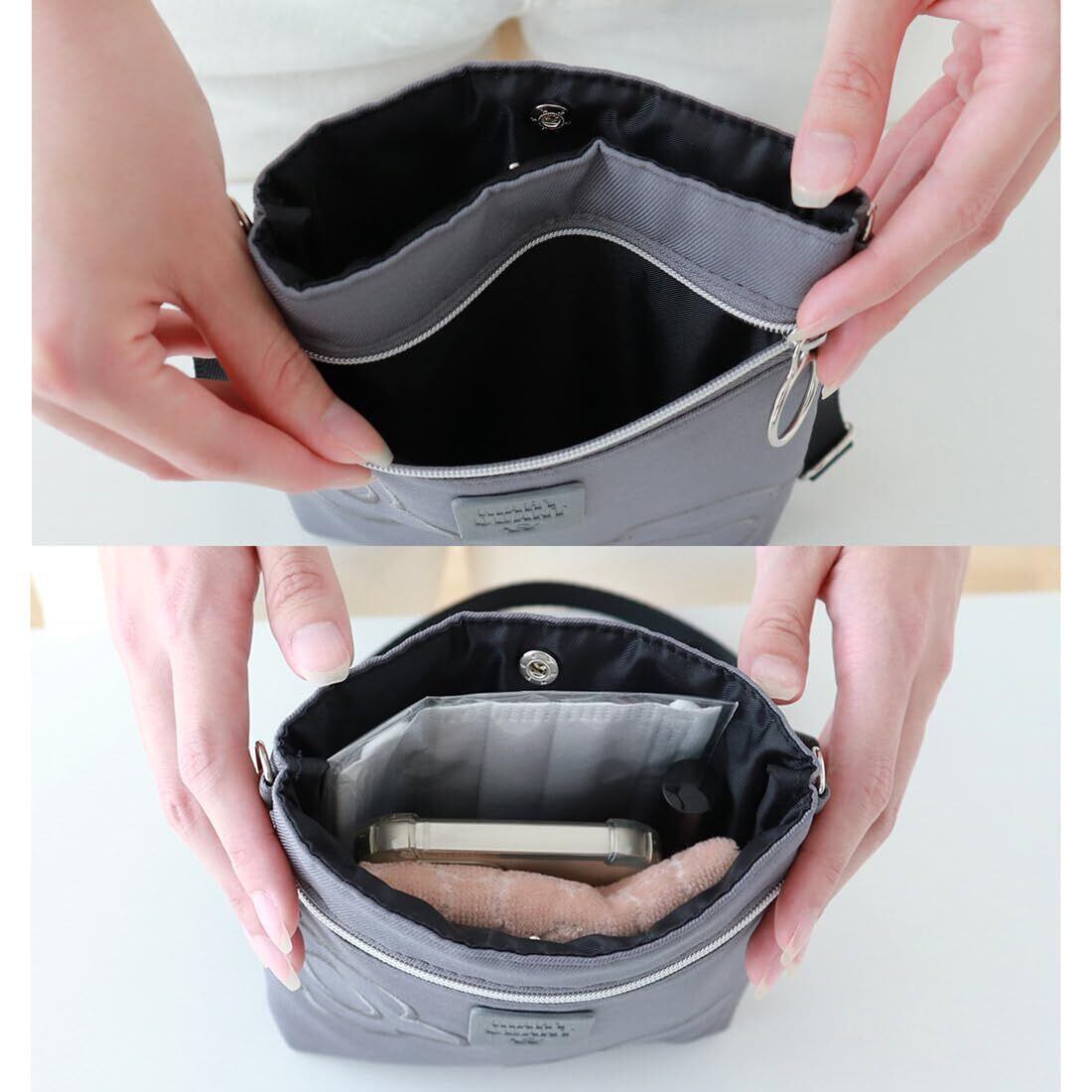 【大人の移動ポケット】スマホやハンカチなど、必要最低限のアイテムを入れるのにちょうどいいサイズです。使いやすいカラーで様々なコーディネートに馴染みます。オフィス内の移動や旅行先で常に持ち歩きたいスマホやハンカチ、リップなどを収納できる便利なアイテムです。