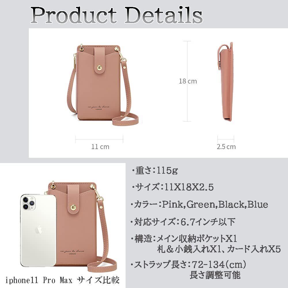 【サイズ・仕様】約11×18×2.5cm(ショルダーストラップの長さ/72〜134cm)メインポケットX1、お札&小銭入れX1、カード入れ×5、(iphone11Pro Max5.5一台収納可)