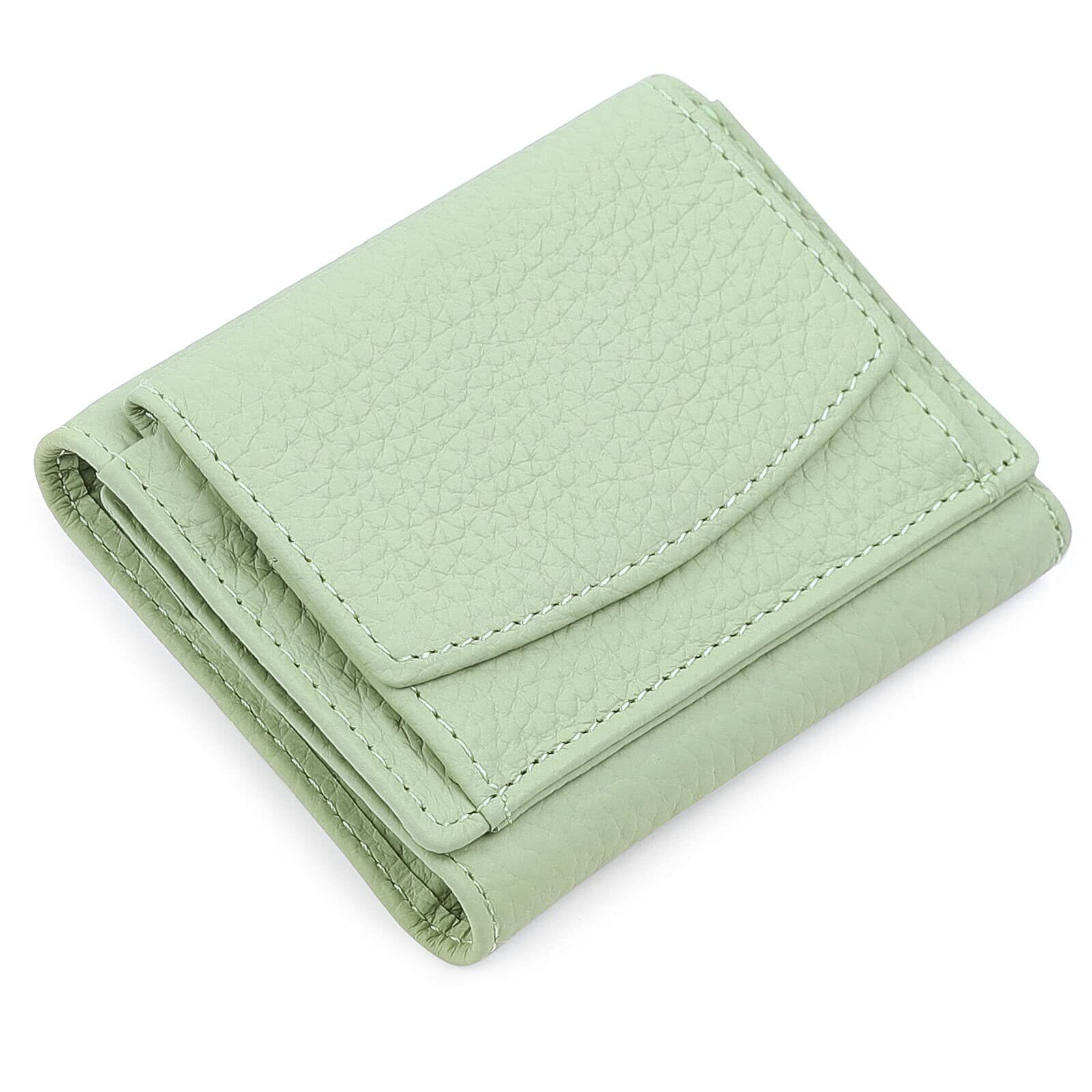 [imeetu] ミニ財布 三つ折り財布 レディース メンズ 本革 小さい財布 スキミング防止 小銭入れ付き みつおり 牛革 軽量 コンパクト RFID (グリーン)