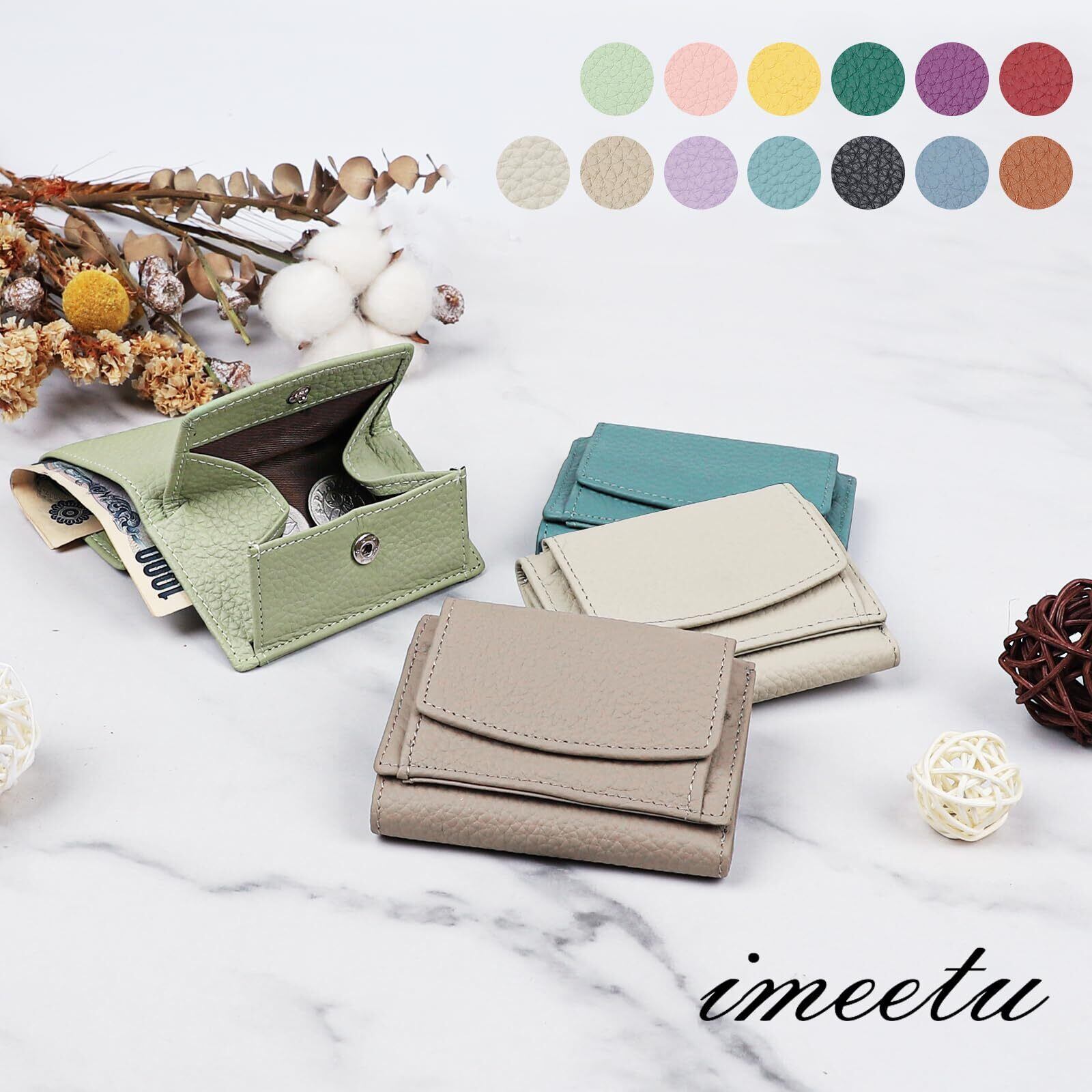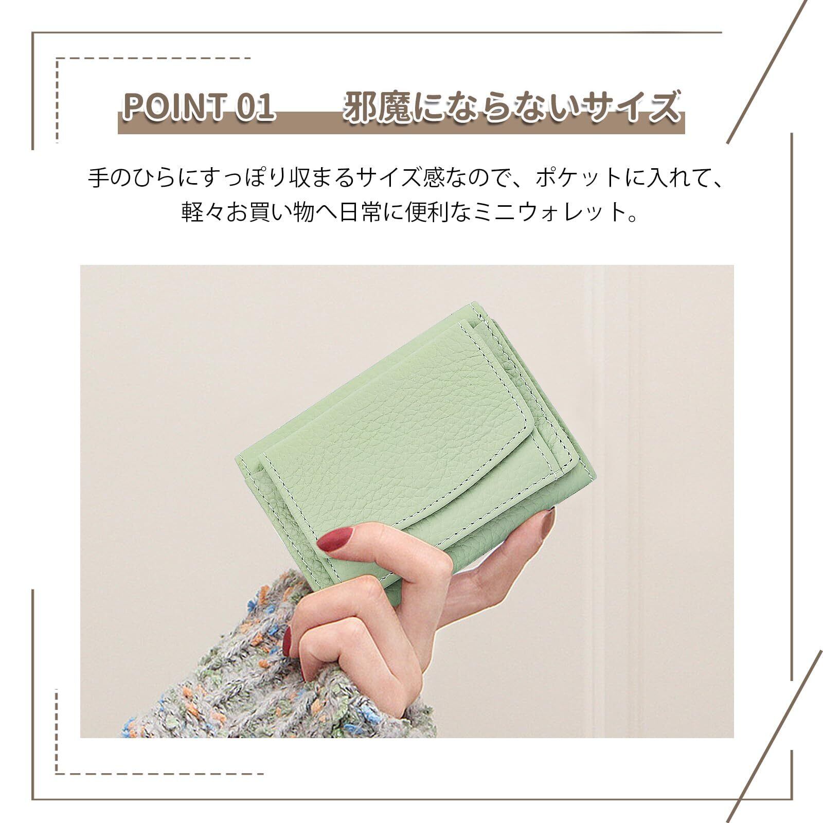 【在庫セール】[imeetu] ミニ財布 三つ折り財布 レディース メンズ 本革 小さい財布 スキミング防止 小銭入れ付き みつおり 牛革 軽量 コンパクト RFID (グリーン) | 無意味ステッカー