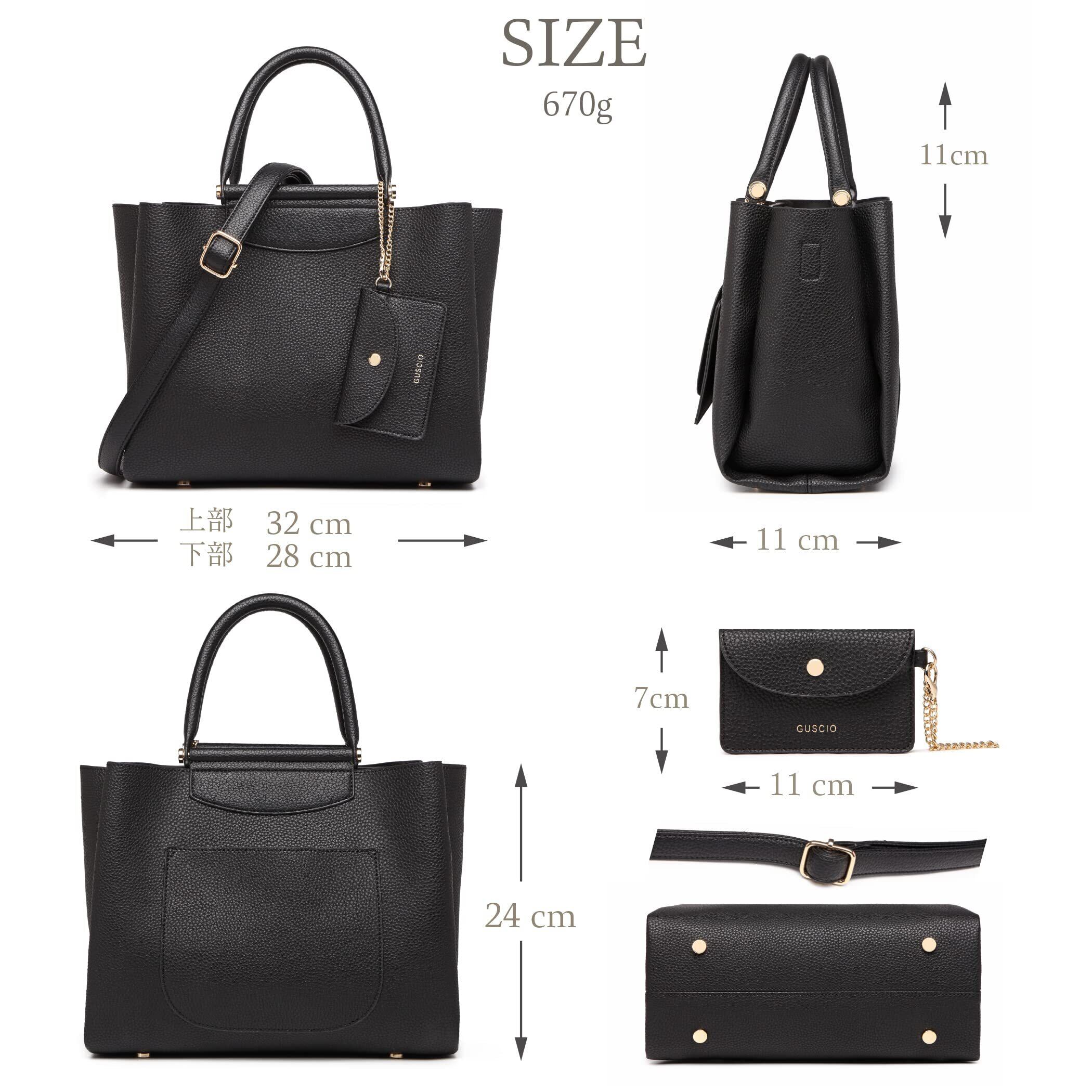 幅:上部32 cm 下部28 cm、 高さ:24cm、 マチ:11cm、 ハンドル高さ11cm 、 ショルダー:73cm~133cm(金具込み)、重量:670g 、 【ミニケース】幅:11cm、高さ:7cm、 【開口部】ファスナー、 【内側ポケット】オープン×2、ジップ×1 、【外側ポケット】オープン×1