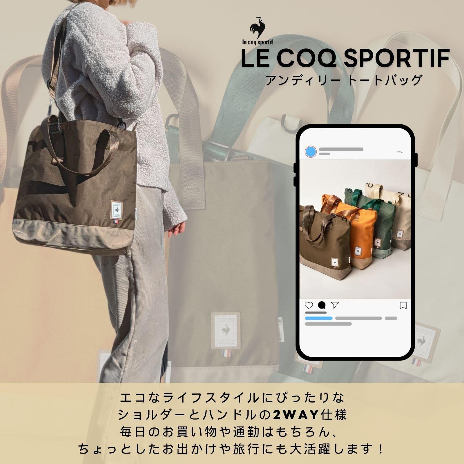 [ルコックスポルティフ] 撥水 抗菌 アンディリー バイカラー 2WAY トートバッグ
