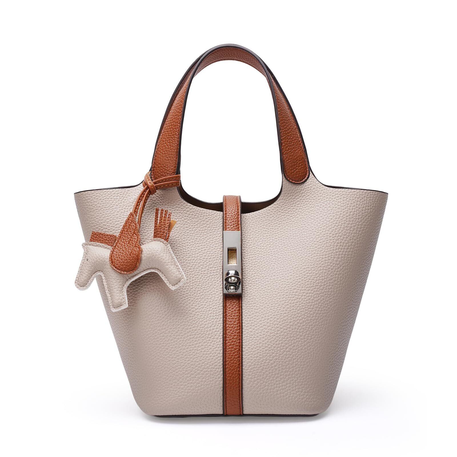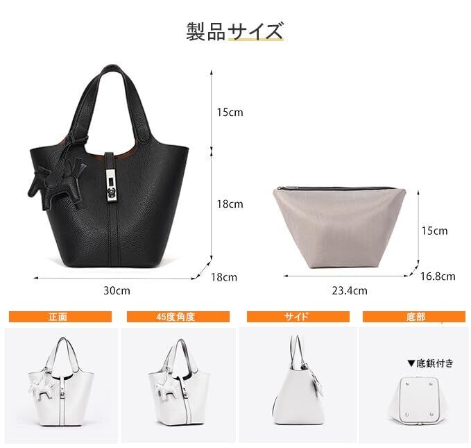 ハンドバッグ レディース レザー トートバッグ 大容量 軽量 通勤 おしゃれ 人気 高見え シンプル 可愛い 小さめ 柔らかい 自立 内ポケット付き チャーム付属