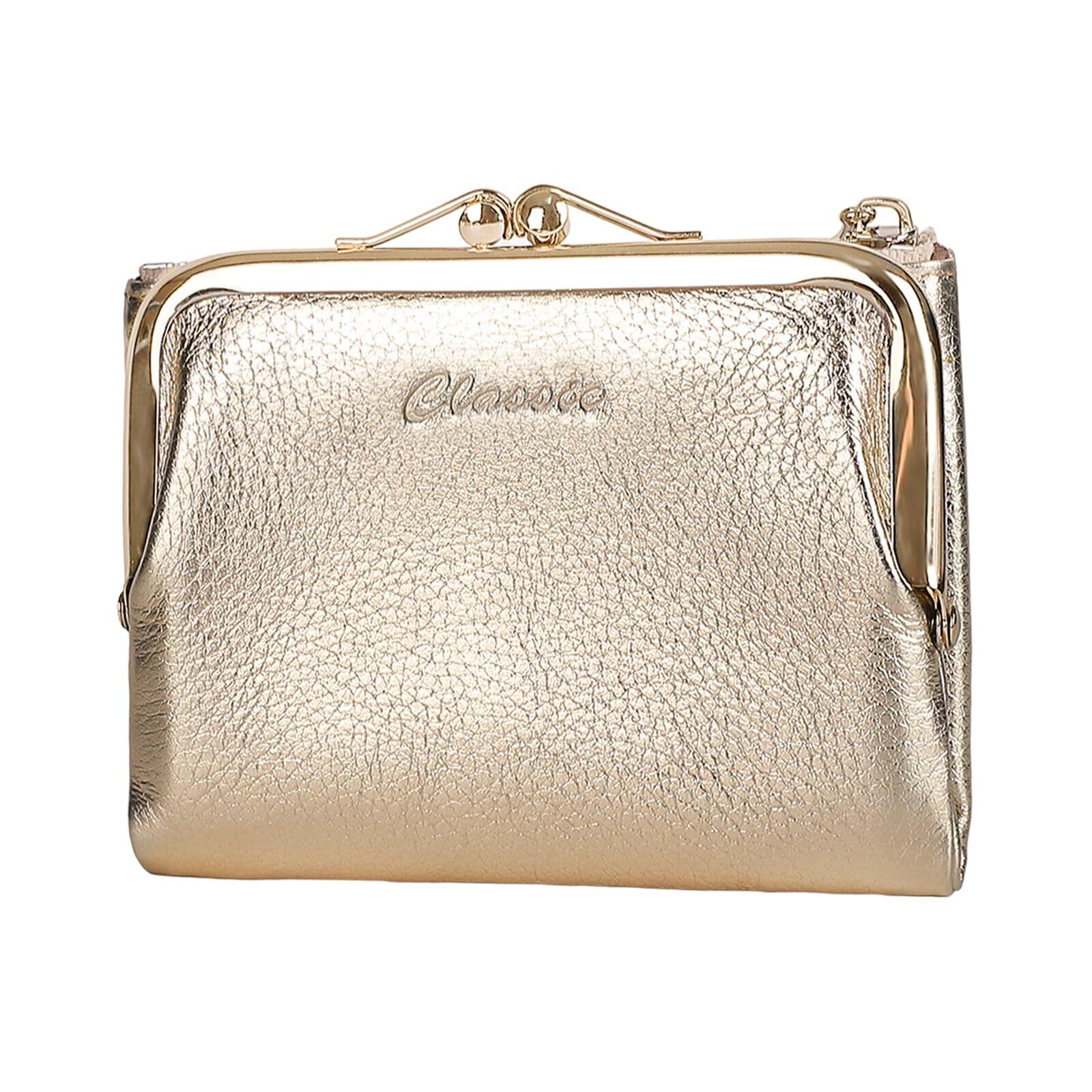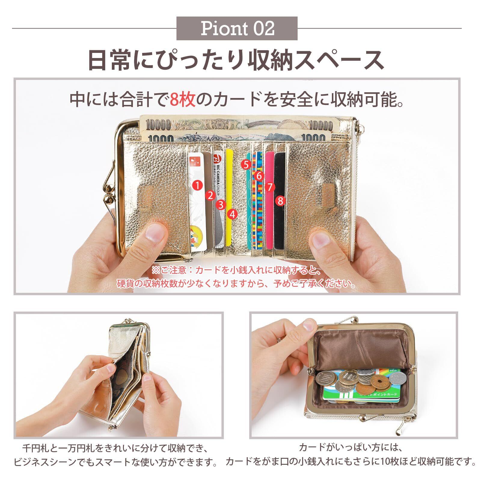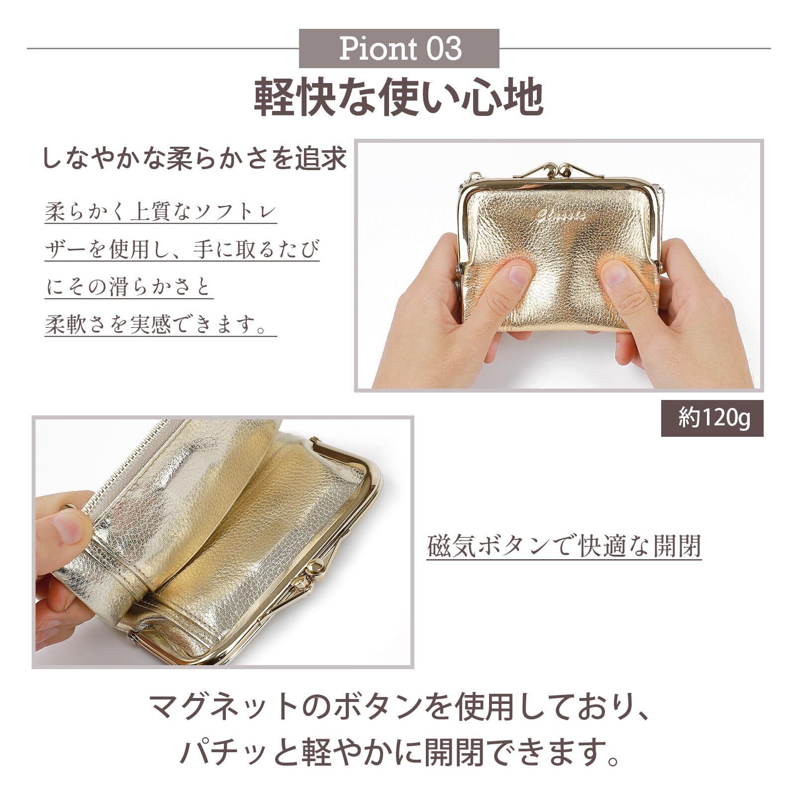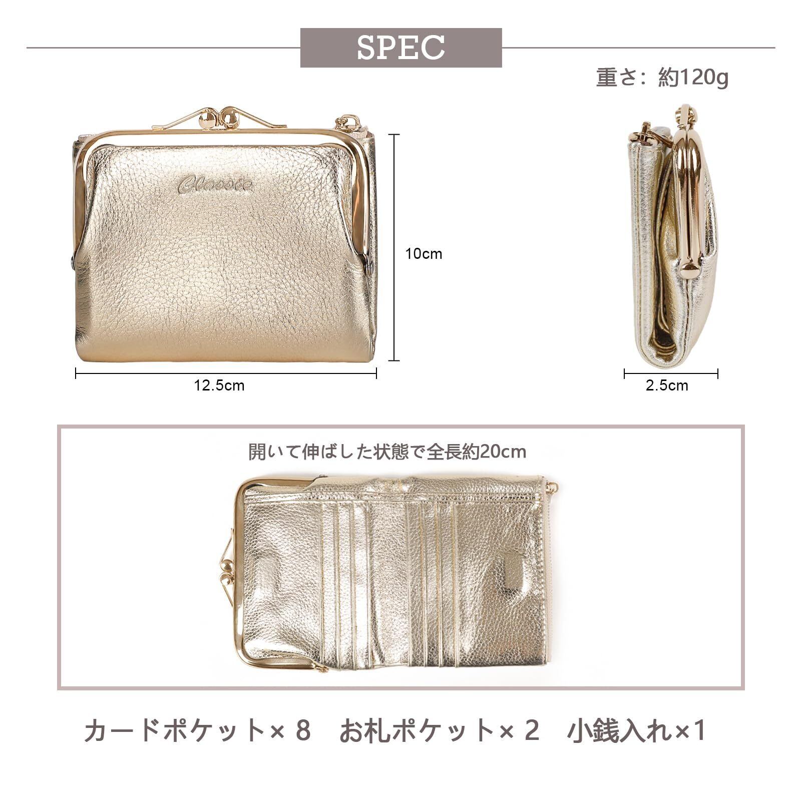[imeetu] がま口財布 本革 レディース 二つ折り財布 旅行財布 大容量 柔らかい 小銭入れ付き 牛本革 軽量 多機能 コンパクト カジュアル (箔レザー ゴールド)