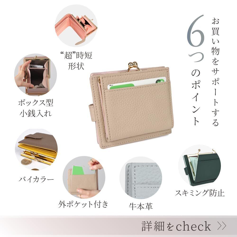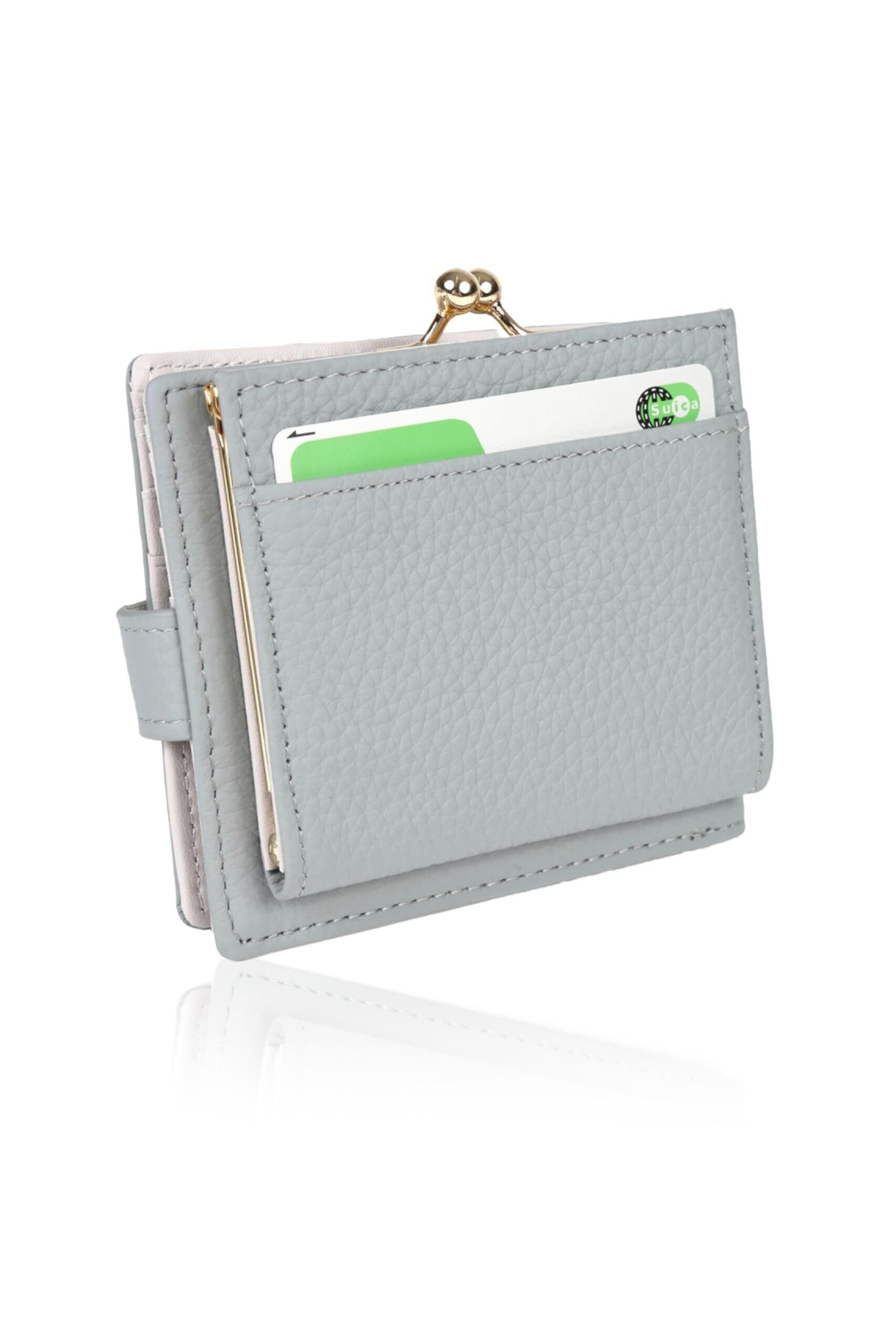 LASIEM(ラシエム) がま口財布 本革 レディース ミニ財布 2つ折り財布 スキミング防止 バイカラー (ブルーグレー✕グレージュ)