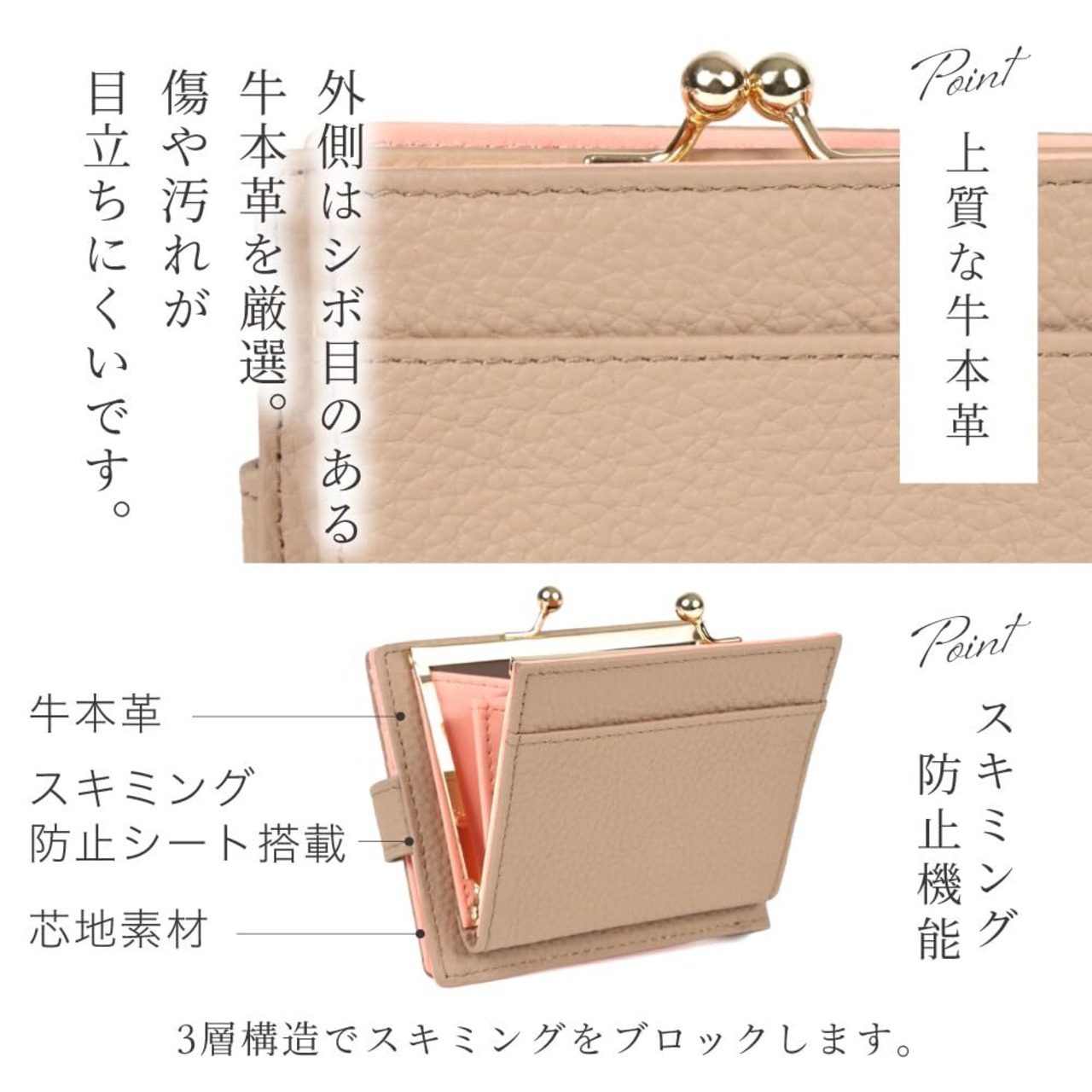 【超時短財布】・時短形状・ボックス型小銭入れ・牛本革・スキミング防止・バイカラー・外ポケット付き!