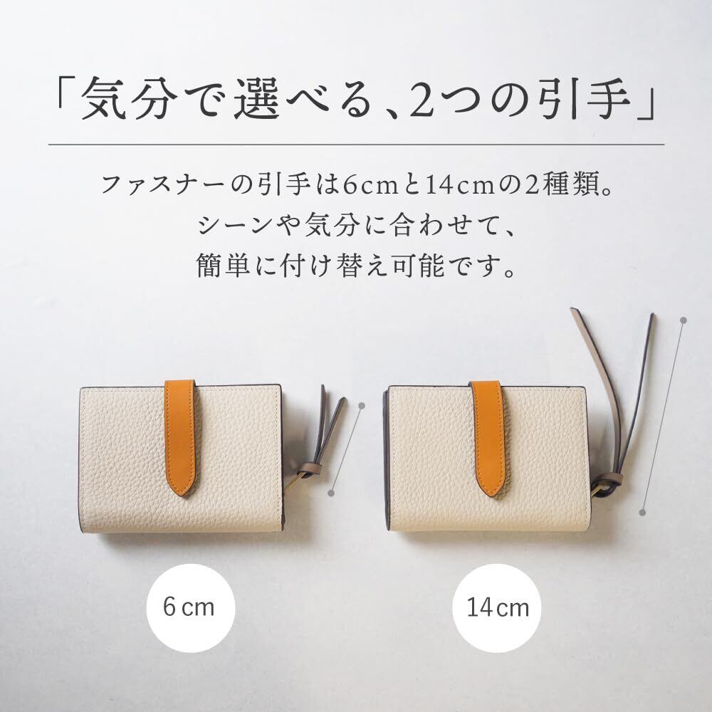 【ずっと触れていたい美しいシボレザー】手触りの良い牛本革を贅沢に使いました。丈夫で傷が付きにくいので永く愛用していただけます。【気分で選べる、2つの引手】ファスナーの引手は14cmと6cmの2種類。シーンや気分に合わせて、簡単に付け替え可能です。
