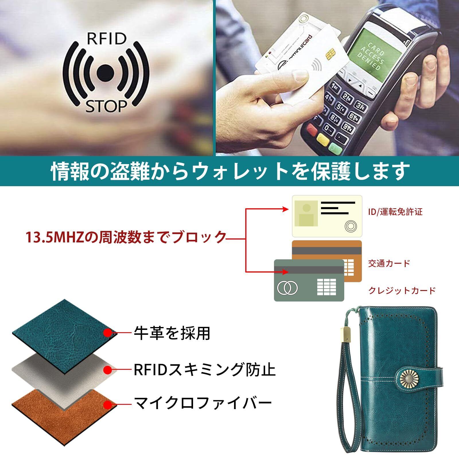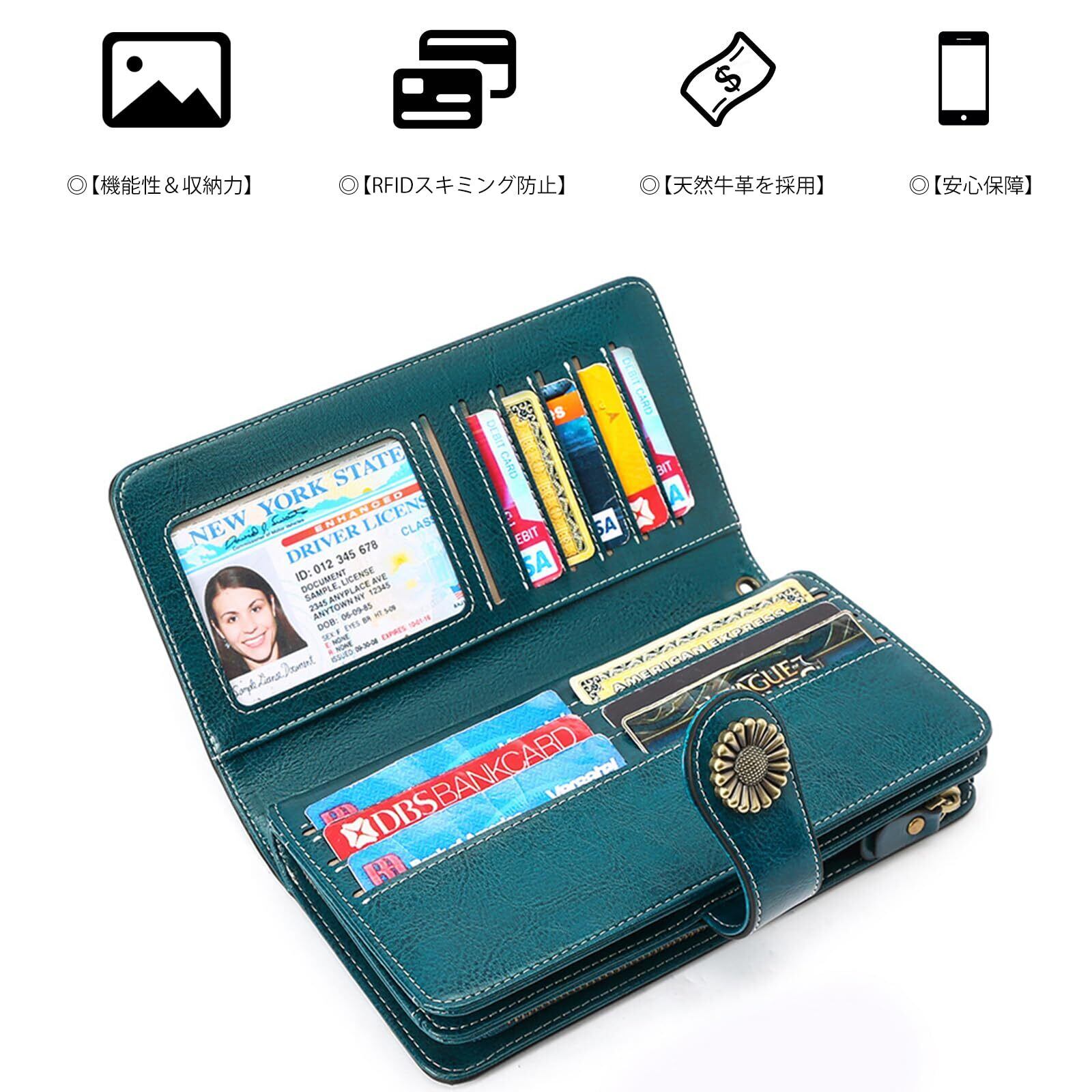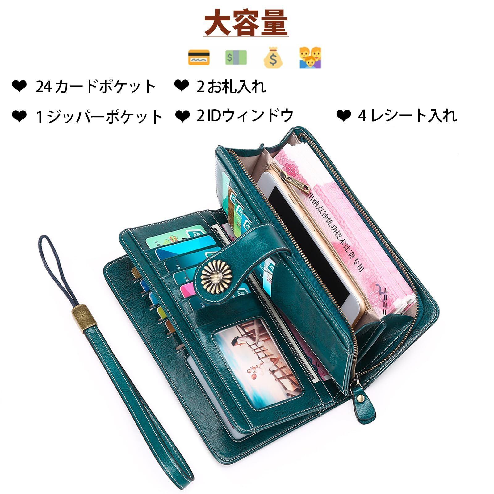 【大容量&長財布】当社のレディースの長財布には多くの必需品を収容でき、4*お札入れ 、24*カードポケット、2*IDウィンドウ、1*ジッパーポケット(2*お札入れと1*ジッパー付き)、1*リストストラップがあります。電話、現金、硬貨、カードと領収書、IDカード、家族写真などを持ち運ぶことができます。カードやその他の持ち運びに必要なすべてのものを収納するのに適したサイズです。
