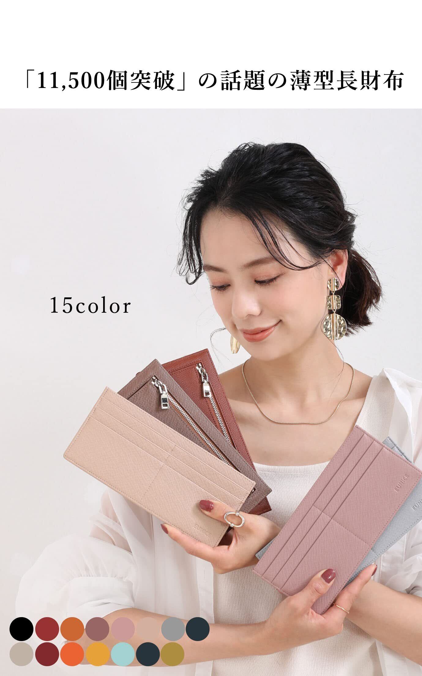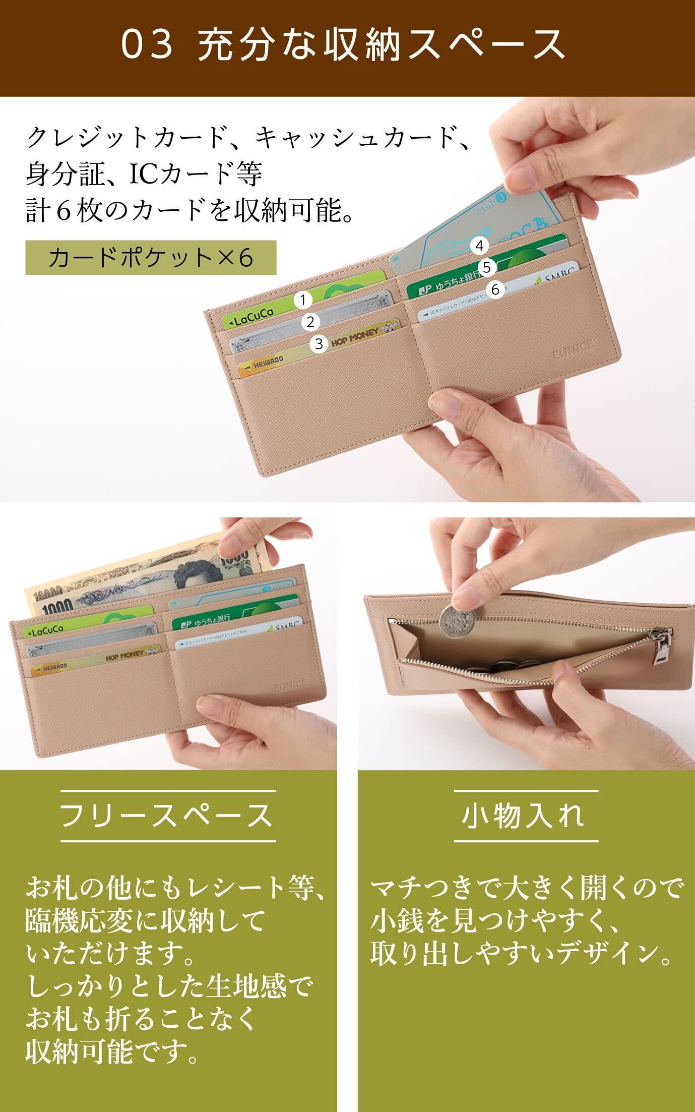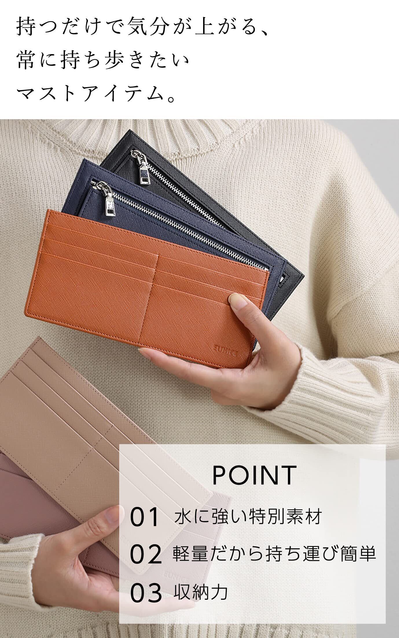 [EUNICE] 長財布レディース 薄型財布 極薄 RFID スキミング防止 ポーチでのお出かけにも使える! (キャメル)