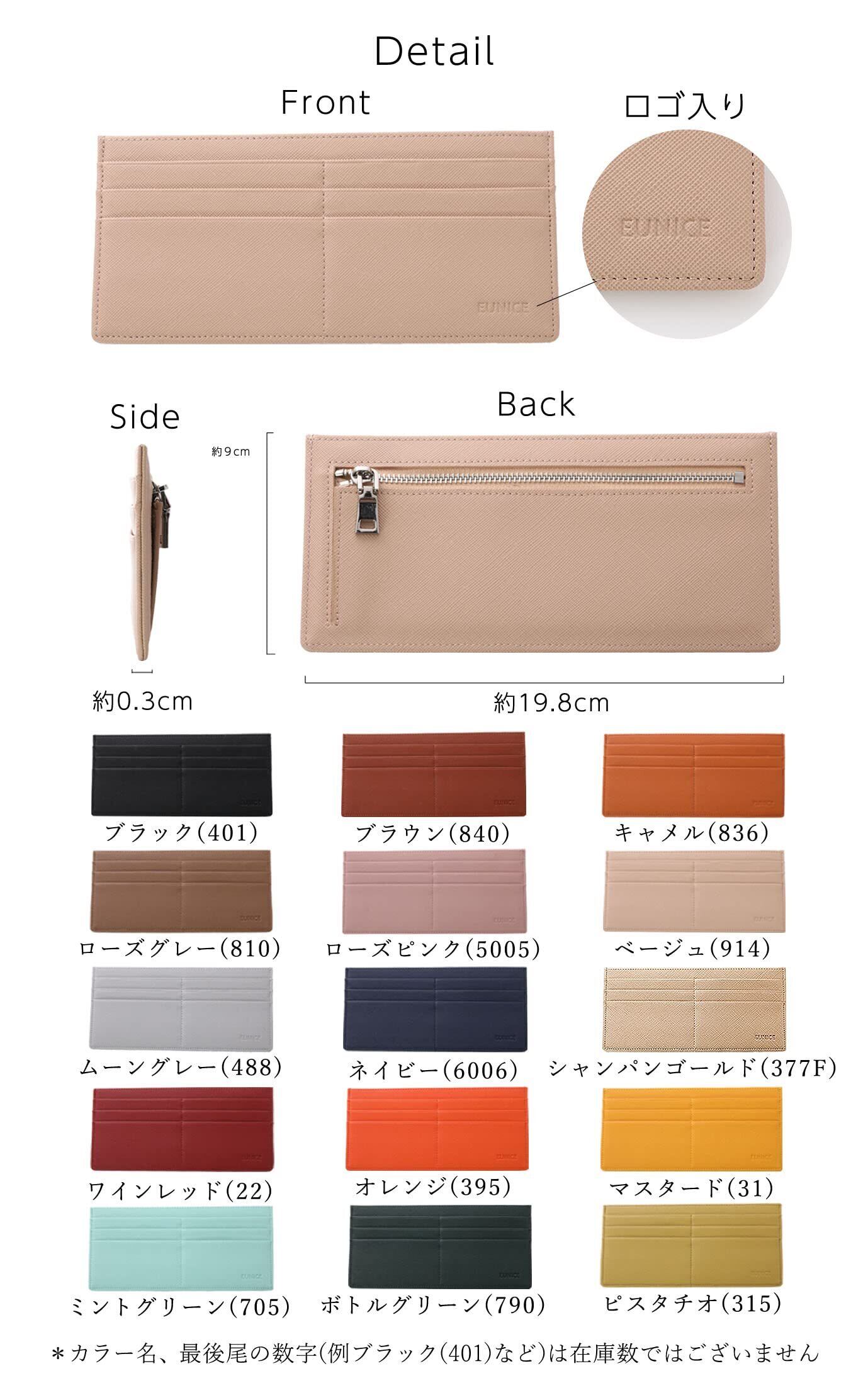 【 サイズ 】横幅×縦幅×マチ:約19cmx9cmx0.3cm / 重量:約82g【 収納 】カード入れ(カードポケット)×6 / 小銭入れ(コインポケット)×1 / お札入れ×1【 素材 / 留め具 】サフィアーノレザー(牛本革) / 留め具:ファスナー(ジッパー)