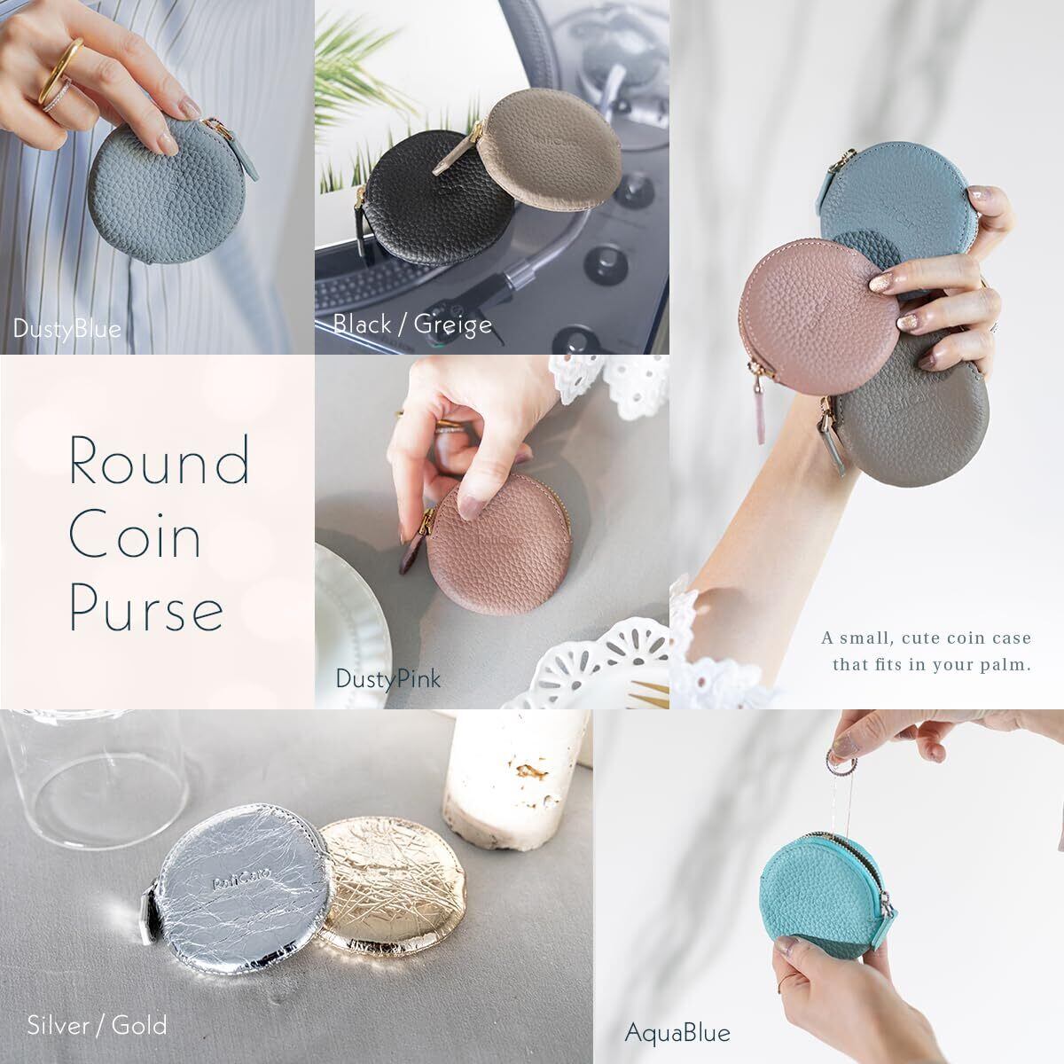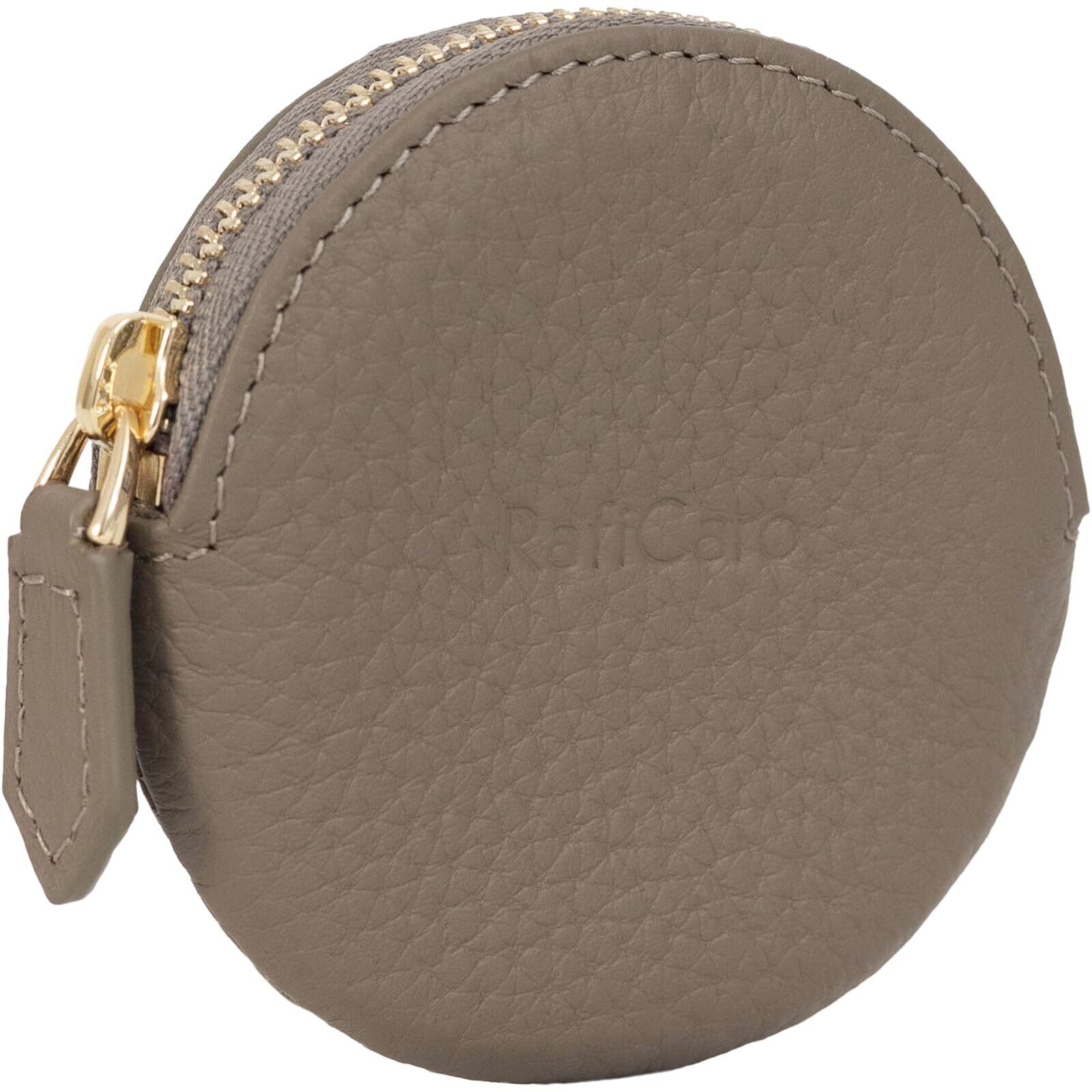 [RafiCaro] コインケース 丸型 小銭入れ 本革 YKKファスナー ミニ財布 ミニポーチ 小物入れ 化粧ポーチ マルチケース ラウンド型 シンプル おしゃれ 軽量 グレージュ