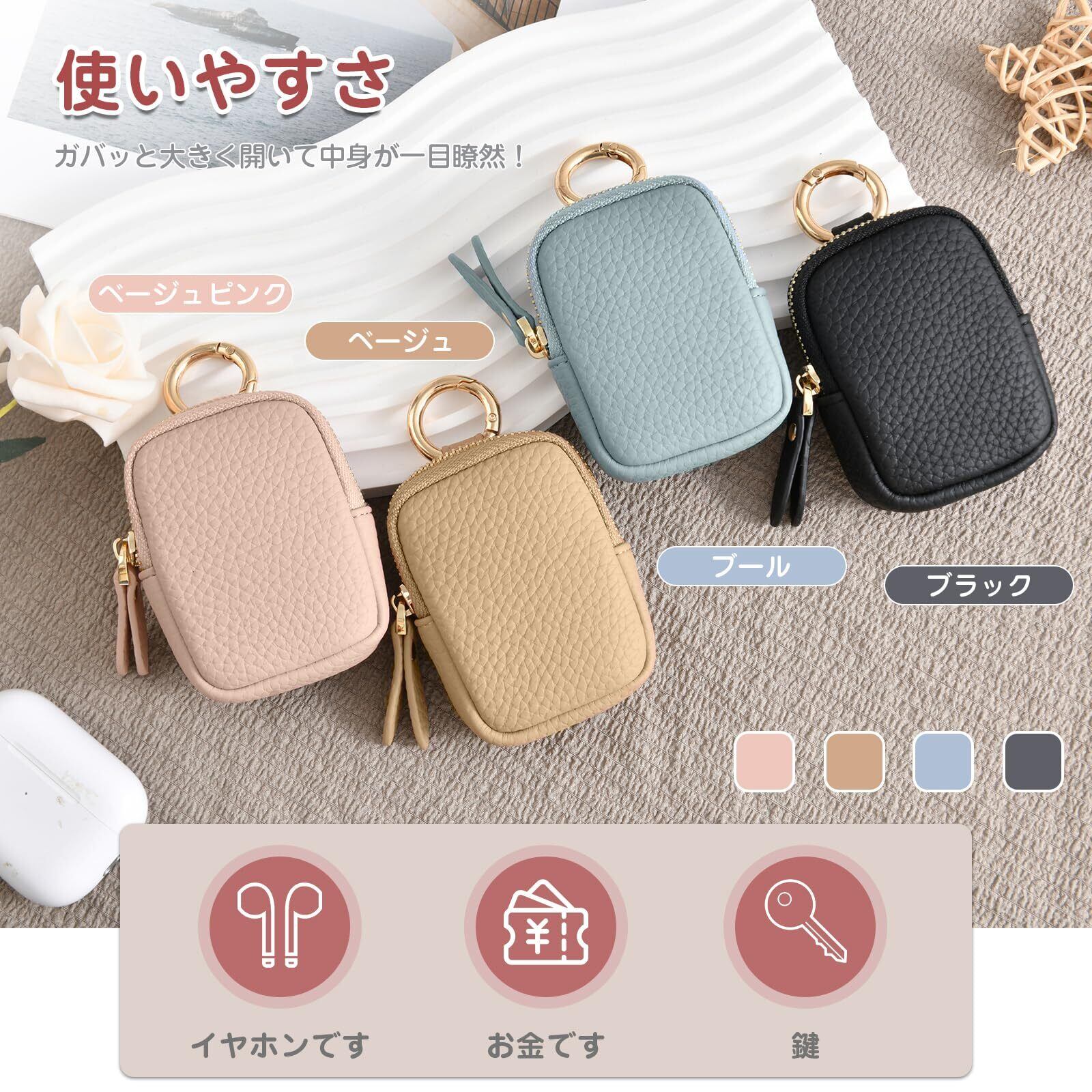 小銭入れ レディース コインケース メンズ ヘッドホンケース 革 キーケース キーリング付き ミニ財布 コンパクト 手持ち こぜにいれ 使いやすい 小物入れ 印鑑ケース ヘッドホン持ち運び 収納(Aブラック)