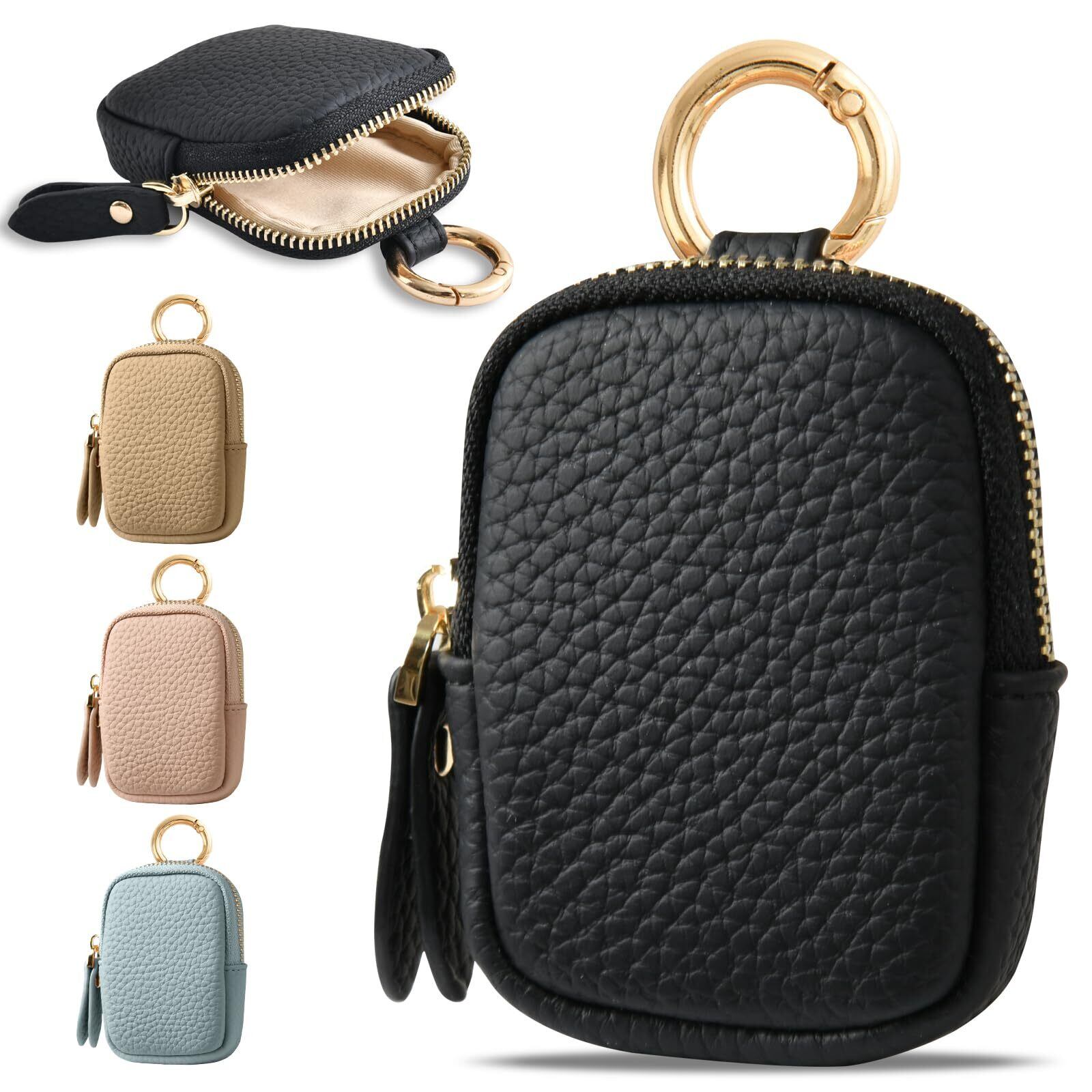 【特価商品】小銭入れ レディース コインケース メンズ ヘッドホンケース 革 キーケース キーリング付き ミニ財布 コンパクト 手持ち こぜにいれ 使いやすい 小物入れ 印鑑ケース ヘッドホン持ち運び 収納(Aブラック) | 無意味ステッカー