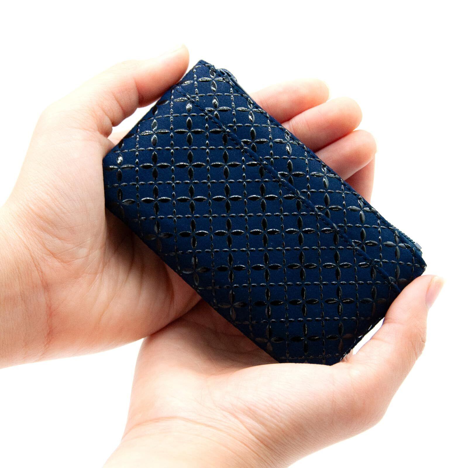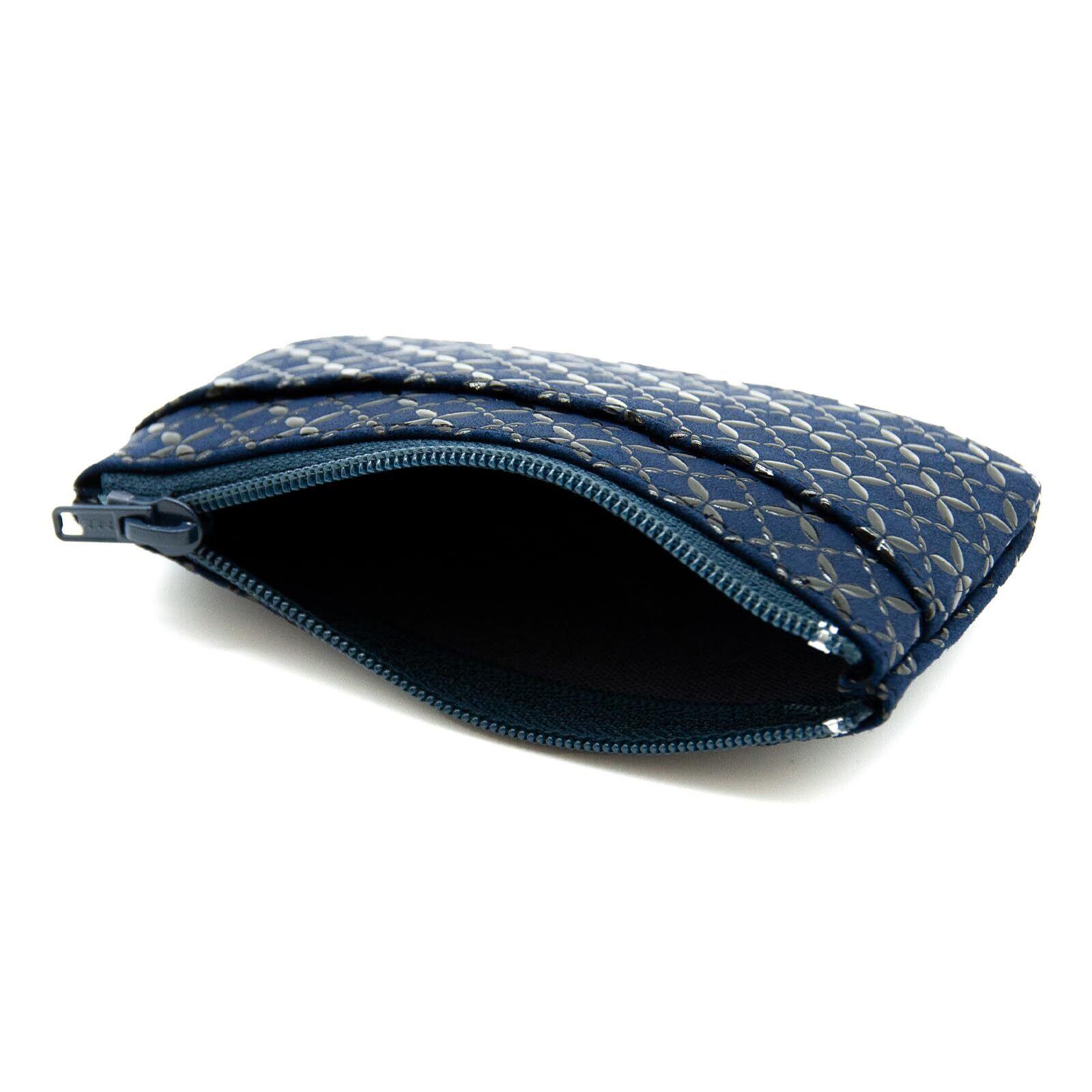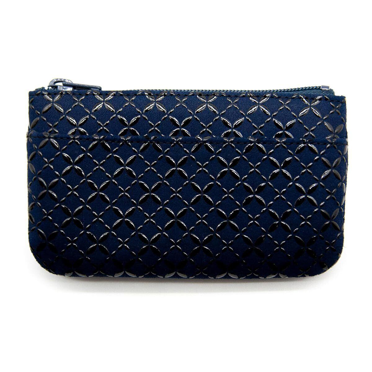 [印傳屋] 印伝 小銭入 コンパクト 鹿革 漆 工芸品 No.1002 ([04-179] 紺地-黒漆 七宝繋ぎ)