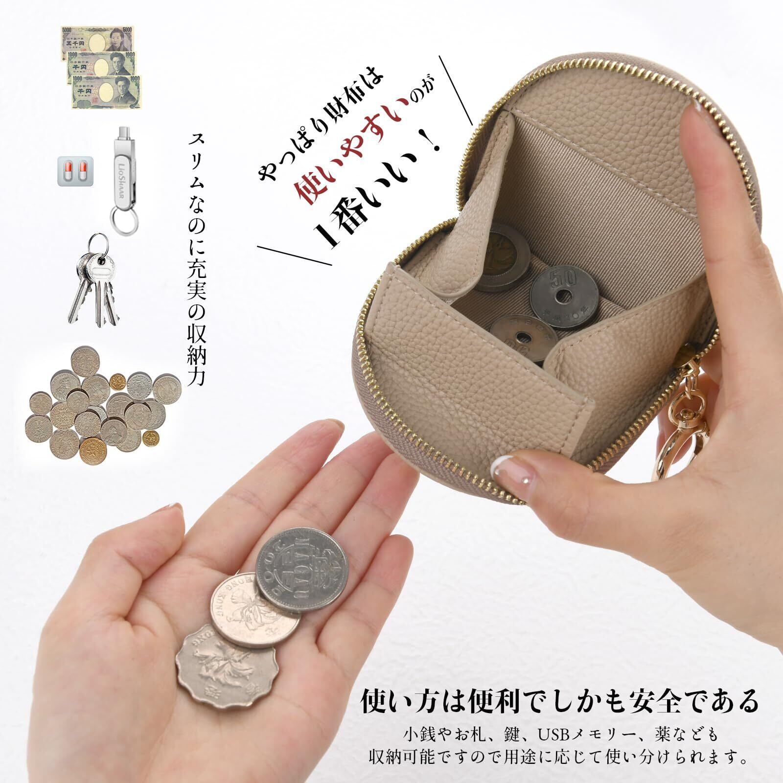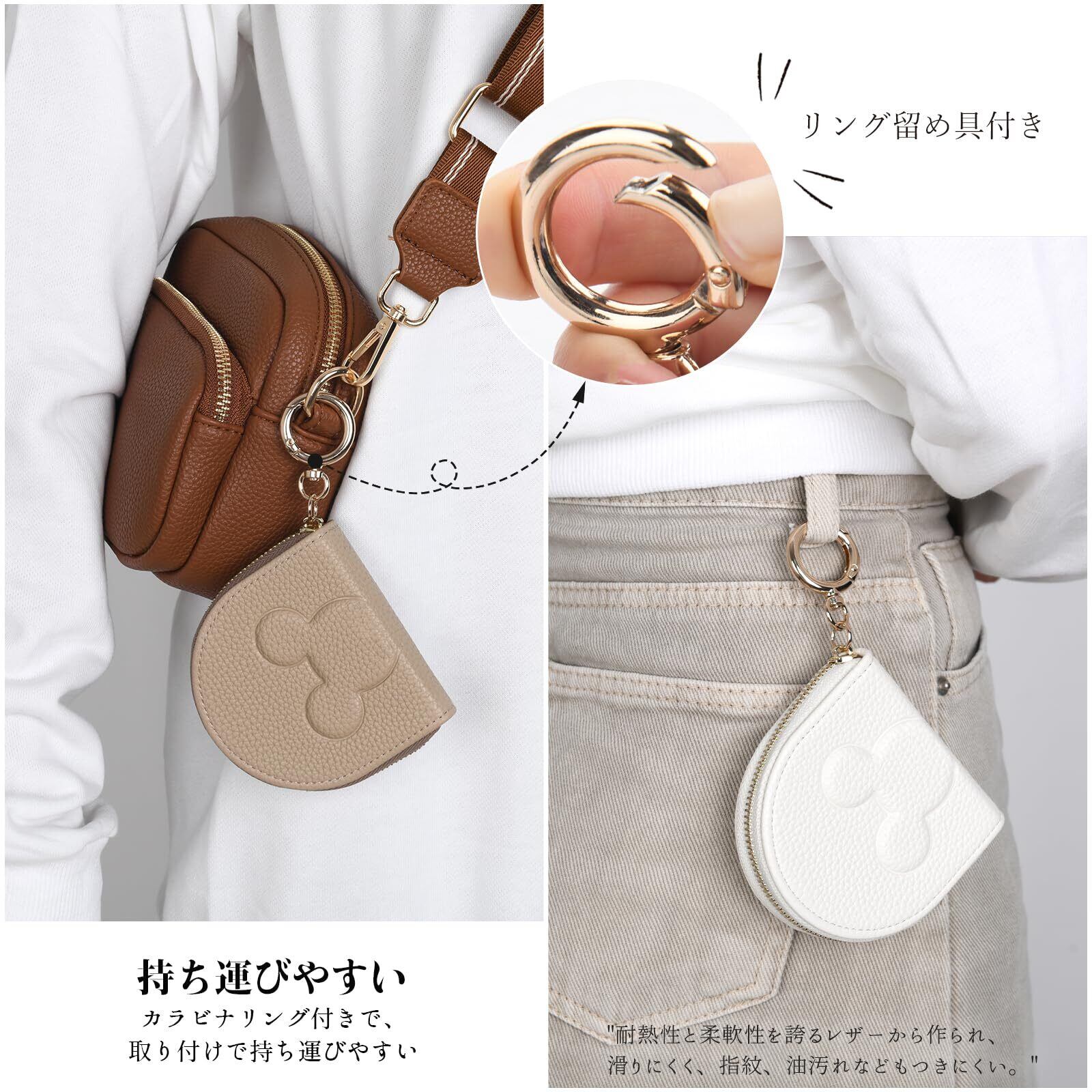 【リングバックル付き】超軽量63g、小銭入れは手のひらより小さく、ミニでコンパクト、ポケットに入れて持ち運べます。 小銭入れにはリング留めが付いており、カバンに引っ掛けて持ち運ぶのに便利で、日常生活や旅行などに最適です。