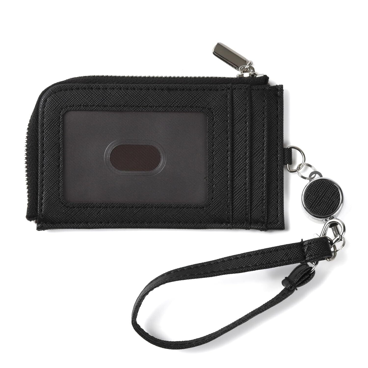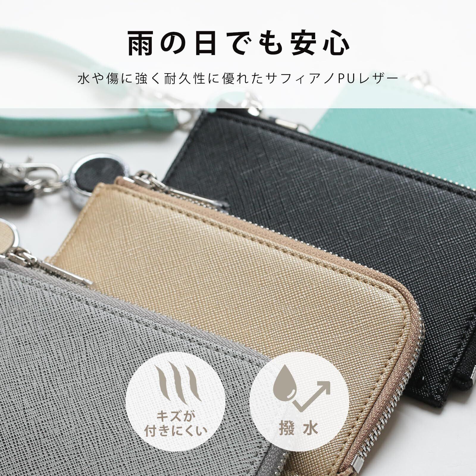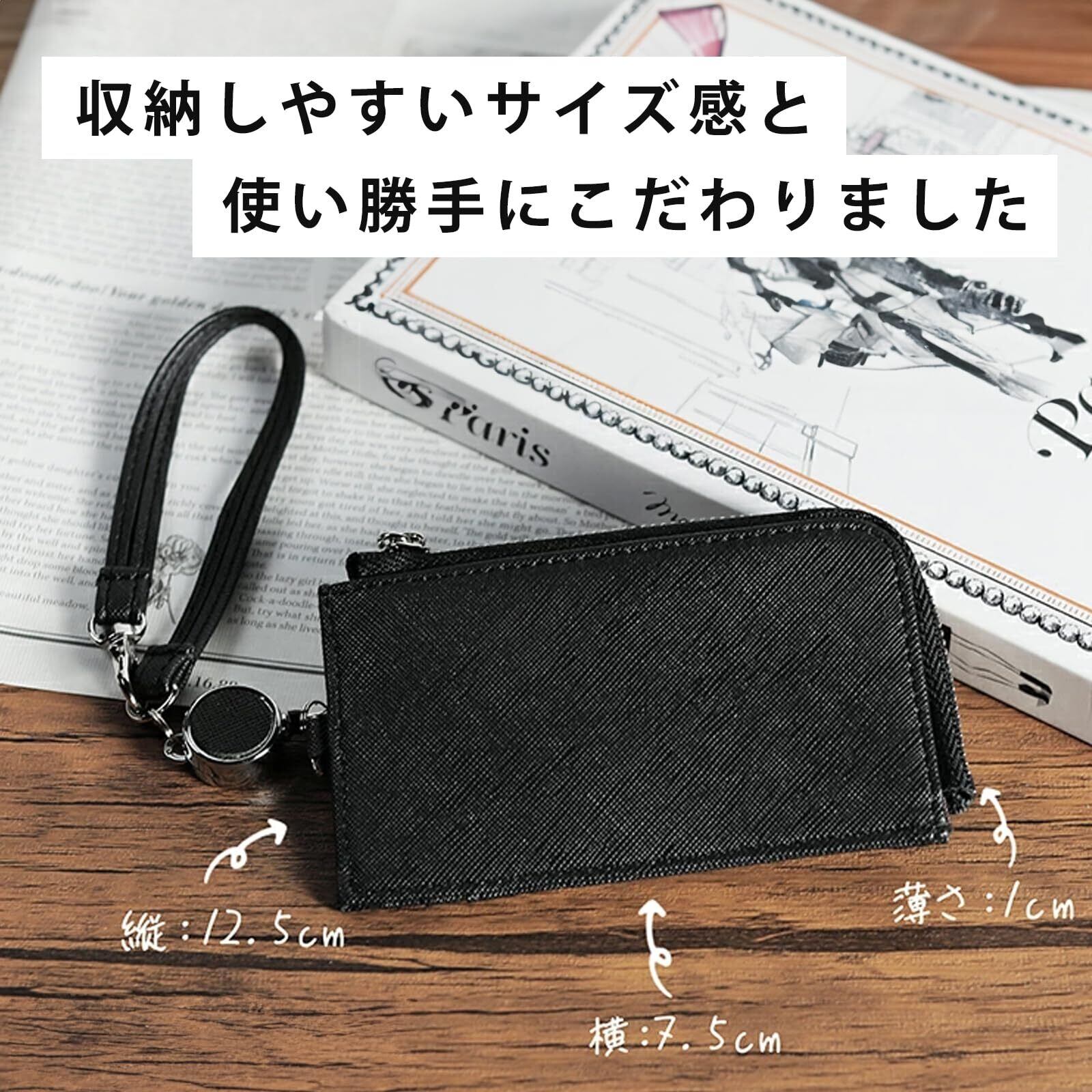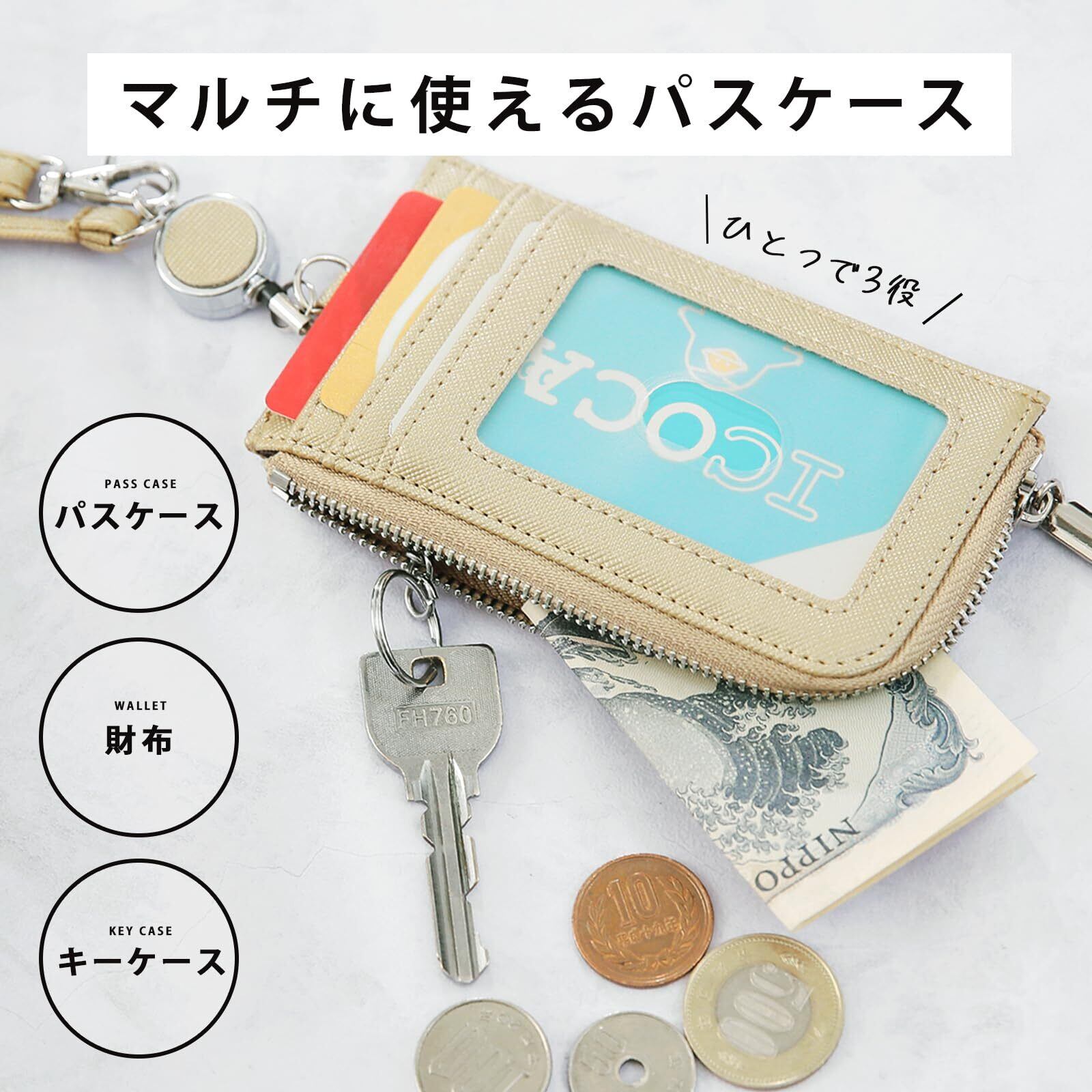 [QUARE] パスケース カードケース 定期入れ キーケース レディース リール付き 薄型 大容量 マルチケース 小銭入れ suica (ブラック)