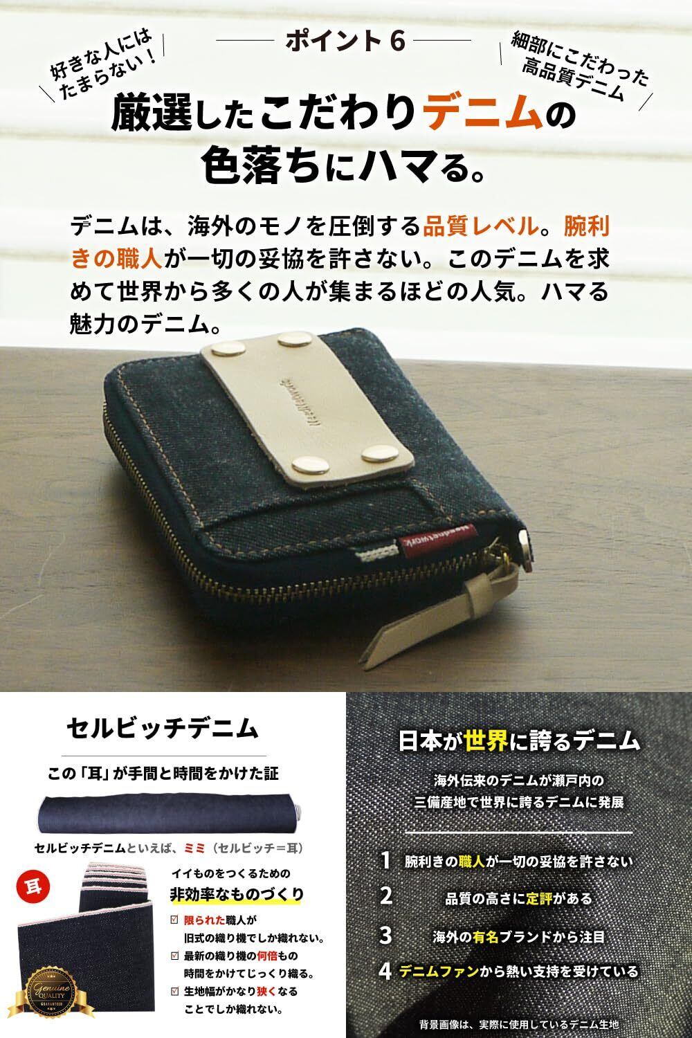 「セルビッチデニム」といえば、ミミ(セルビッチ=耳)。その「耳」と「ロゴの赤タブ」をさりげなくあしらい、ヴィンテージデニム感が高いことも嬉しいポイント。ヴィンテージの王様的存在でジーンズの醍醐味を言われる「色落ち」の風合いや表情は一般的なデニム生地とは比べものにならない。。摩擦でデニムが最高の色落ちをして自分だけのオンリーワンアイテムに育つのも魅力のひとつ。通常ありがちなチープ素材の小銭入れ コインケース カードケースは使い込むと使用感がハンパなくすぐボロボロなりますが、当商品は、デニム素材のスレ感で逆に味が出て愛着がUP。とく使用する「セルビッチデニム」の経年変化の風合いはよくあるデニム素材とはモノが違う。