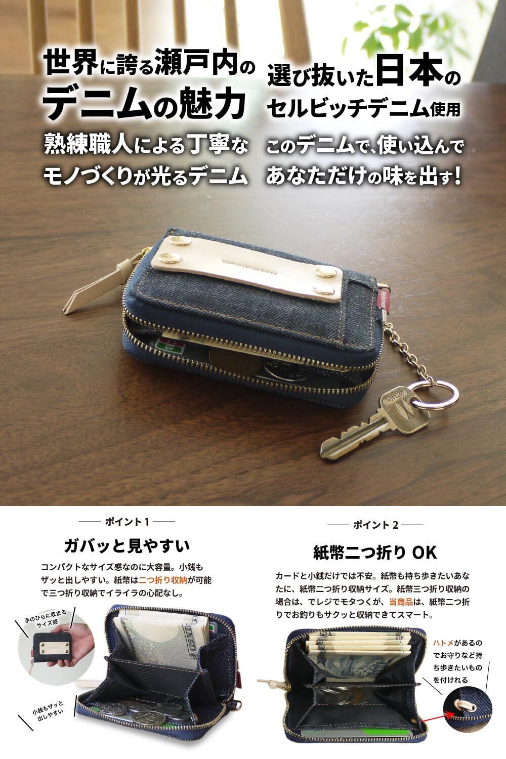 [ニードネットワーク] 日本が誇るデニム 小銭入れ コインケース ファスナー メンズ レディース 財布 カードケース ミニ財布 コンパクト 小さい キーチェーン付