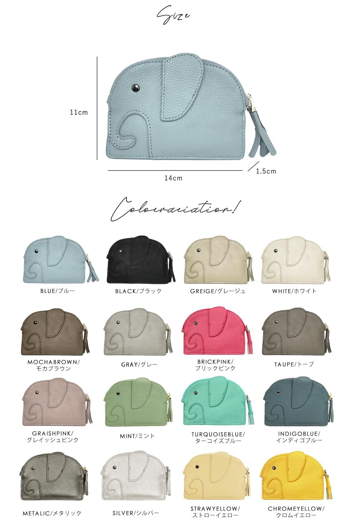 かわいいゾウモチーフの小銭入れ。人気の大人色をご用意しました。