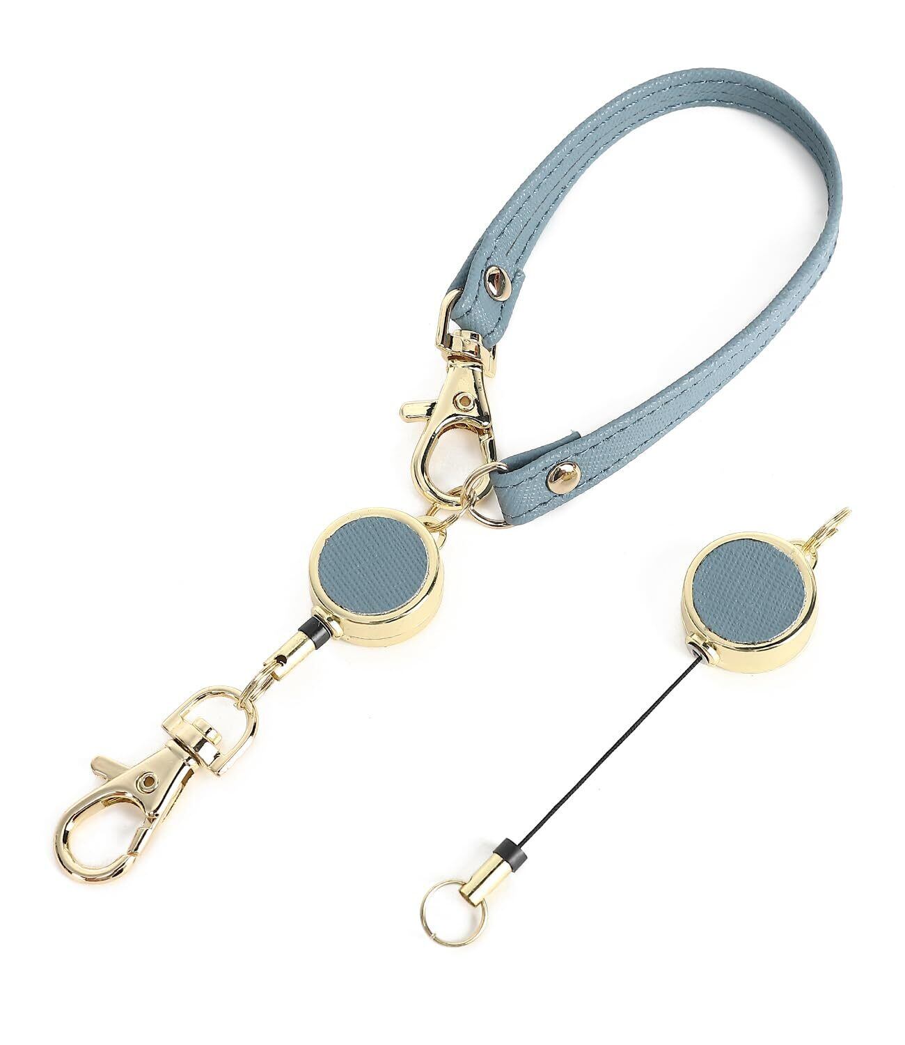 [honey&blue] リールストラップ 伸びる キーホルダー 頑丈 2個セット ワイヤーストラップ (【リールのみ】 サックスブルー)