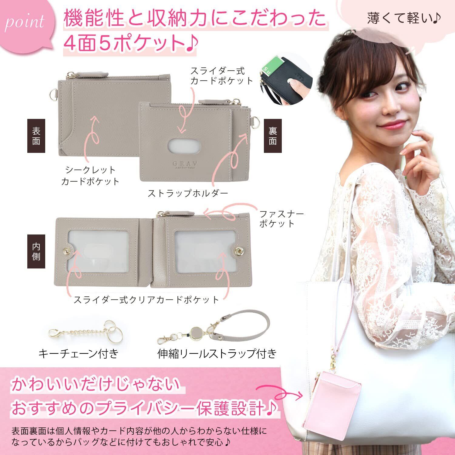 [GRAV] パスケース 定期入れ リール付き コインケース カードケース(キーチェーン ストラップ付き) / リールストラップ レディース かわいい 薄型 キーホルダー