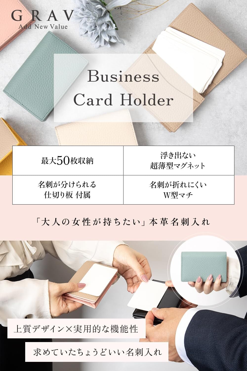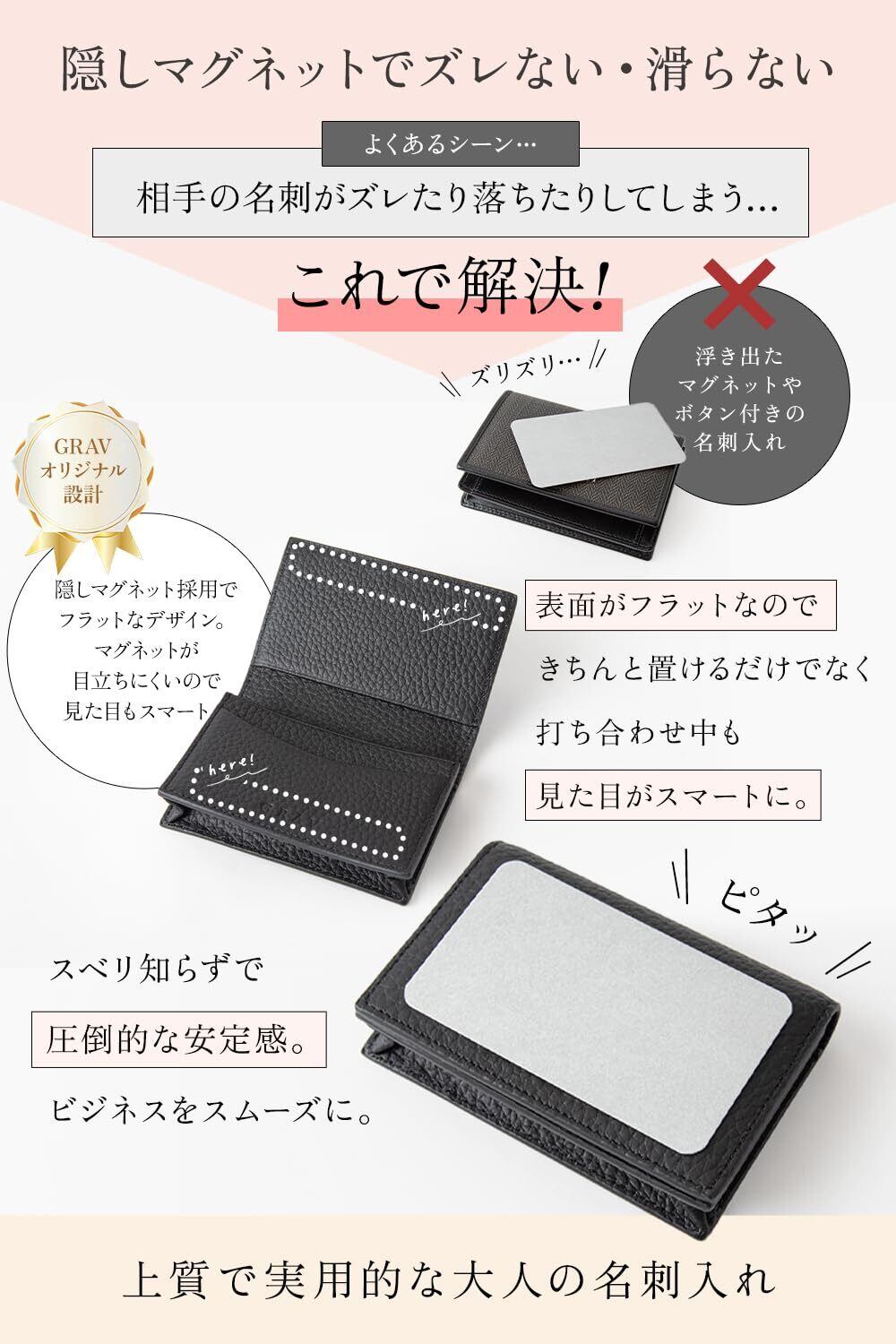 【「大人の女性が持ちたい」本革名刺入れ】求めていた上質で実用的な名刺入れがGRAVから誕生しました。上質で肌触りが極上のシボ革採用であなたのビジネスを引き立てます。